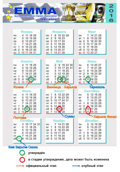 Предварительный календарь Сезона 2016.
