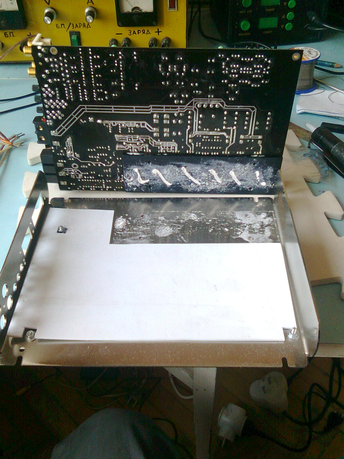 Разбирал "дуал моно" Челестру RA220 - там всё аналогично. Продублировал точки минусовых линий питания, а то они соединялись через алюминиевый поддон корпуса винтами через проставочные гайки и шайбы… Эта задумка вообще довольно странная (мягко говоря), также как и решение вообще соединить сигнальную массу на корпус и прикленые силиконовым герметиком вентиляторы.