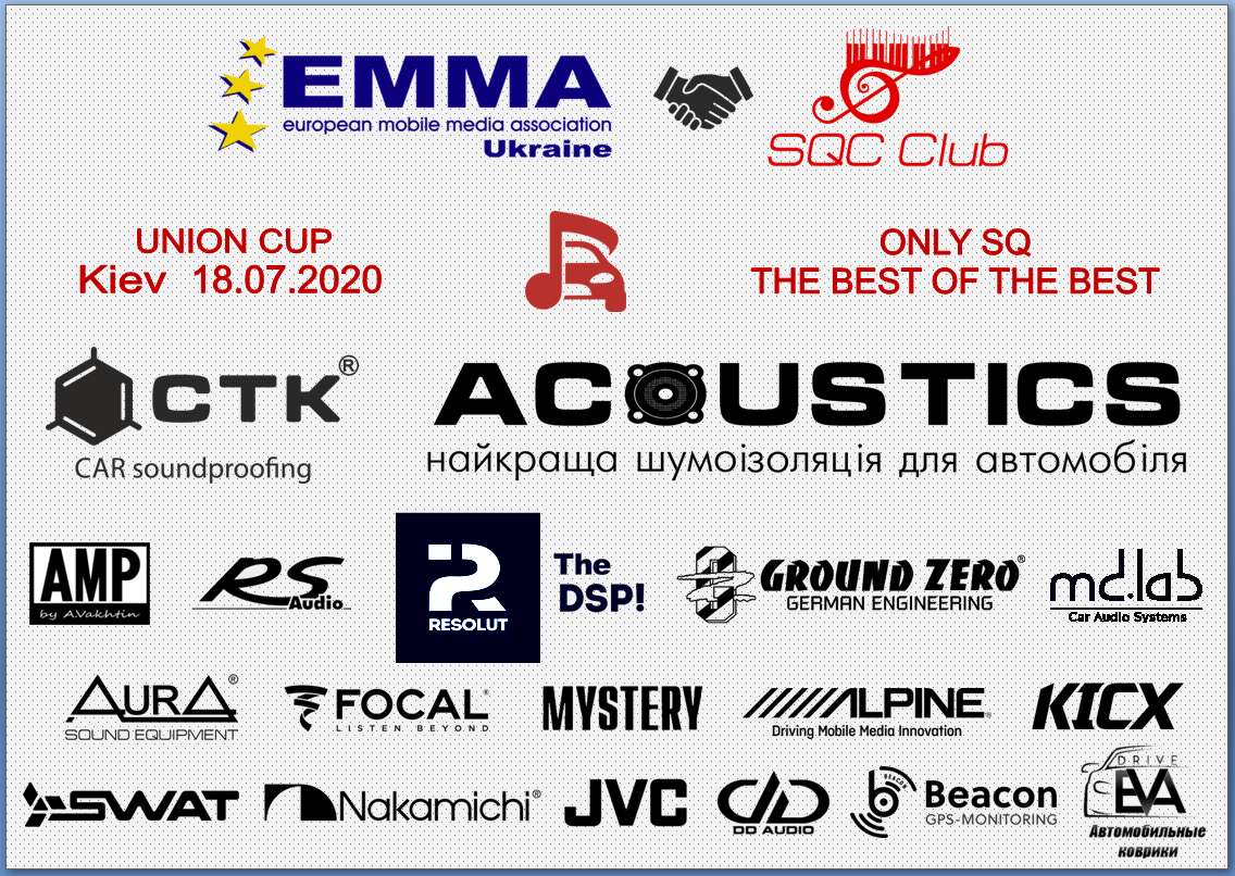 Вложение 76095 Положение о UNION CUP. Соорганизаторы: ЕММА-Украина и SQC Club-Украина. Место проведения: г. Киев Дата проведения: 18 июля 2020 г. Местоположение — https://goo.gl/maps/rFCfwUFLriKuCVjEA Классы: 2 класса по стоимости оборудования — до 5000 Евро и без ограничений. Регламент судейства: без судейства инсталляции, один (возможно 2) судья судит по материалу CD ЕММА (по полному звуковому протоколу класса Мастер), один (возможно 2) судья судит по материалу CD SQC Club (по полному звуковому протоколу). Оценки судей суммируются. Взнос за участие 50$. Кубок The Best of Old School: 2 судьи оценивают по своему материалу, судится только тональный / спектральный баланс и удовольствие от прослушивания. Оценки судей суммируются. Участие могут принимать только участники основных классов, участие бесплатное. Регистрация: на email boris.emma.ukraine@ukr.net с указанием фамилия/имя, марка авто, город. Для класса до 5000 Евро — с обязательным указанием оборудования и его стоимости. Регистрация будет закрыта 15 июля 2020 г. А также представляем наших партнеров и призовой фонд! Вложение 76096 Вложение 76097 Вложение 76098 Вложение 76099 Вложение 76100 Вложение 76101 |