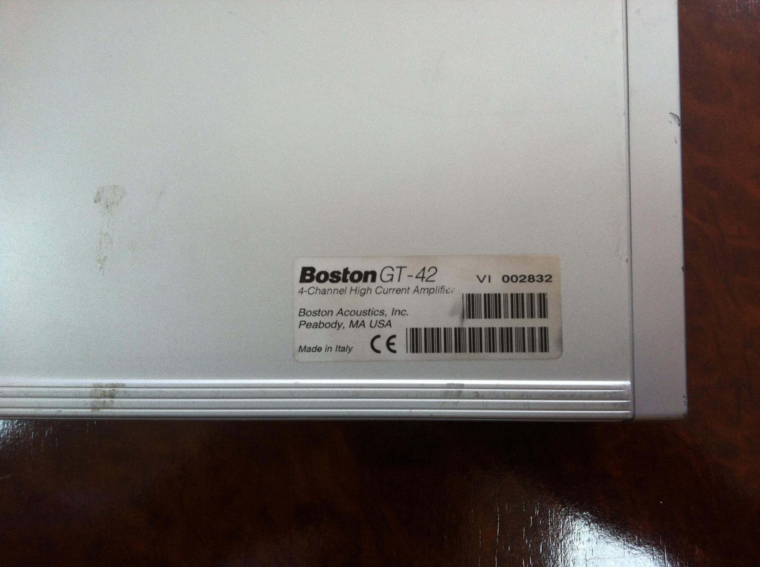 Продаю два підсилювачі Boston GT 42. Один після ремонту (попала вода, прогоріла плата, робочий), другий без будь-яких втручань, трудиться в авто. Стан на фото.