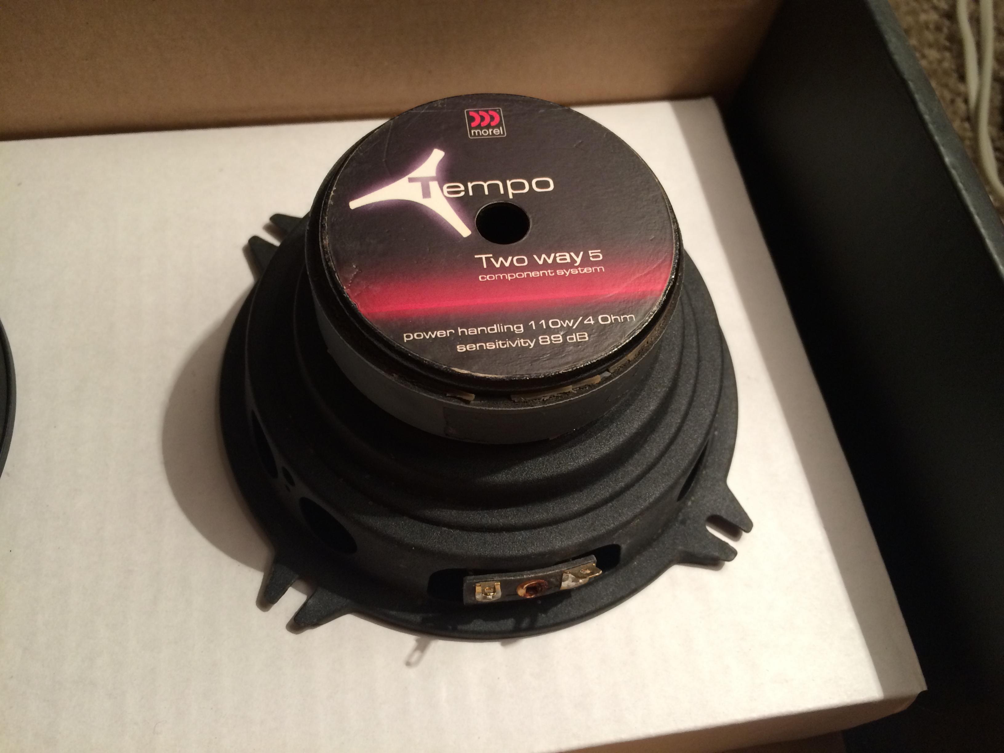 Продам СЧ Morel Tempo 5,покупались новыми,в использовании были где-то пол года,после были сняты и хранились дома в родной коробке.Технически вопросов нет,не мотались,не перегружались,единственный минус примята середина на одном динамике(на фото видно),но на качество звука это не влияет. Есть еще кроссоверы родные,кому нужно могу продать тоже.