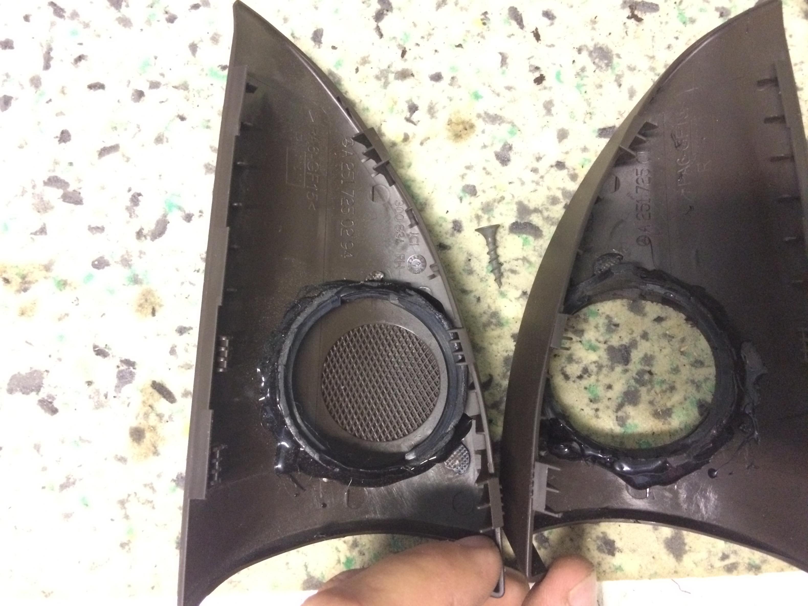 На тыл в штатное место отлично "влетели". А вот спереди, поставили, послушали... не то пальто. Во первых направление, кто их направлял не знаю, а сетка родная это просто фейл...... акустически прозрачная сетка, да думаю они об этом термине вообще ничего не слышали. В большинстве углов наклона эта сетка даже не прозрачная, ну размер дело второе.... короче сначала попробовал, потом переделал.