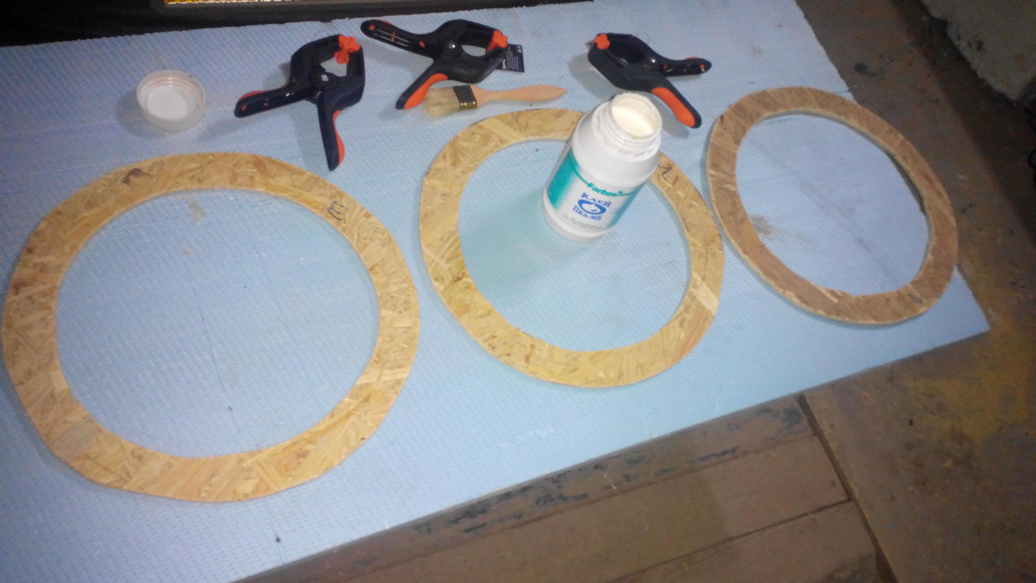 Приступил к лицевой панели. OSB + несколько колец для усиления места крепежа динамика.