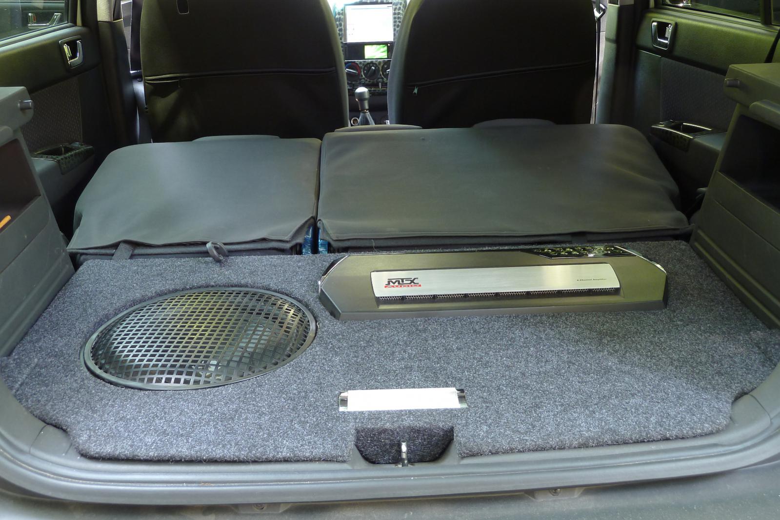 Посмотрите как сделано у меня в Гетце. В багажнике закреплена рама, сваренная из стального профиля. Верхняя часть - откидная, на шарнирах. На раме ящик сабвуфера и панель, на которой закреплен усилитель. Так как усилитель имеет собственное активное охлаждение и "ноздри" его выведены сверху - дополнительного охлаждения не требуется. В общем - смотрите фото, там, вроде, все понятно.