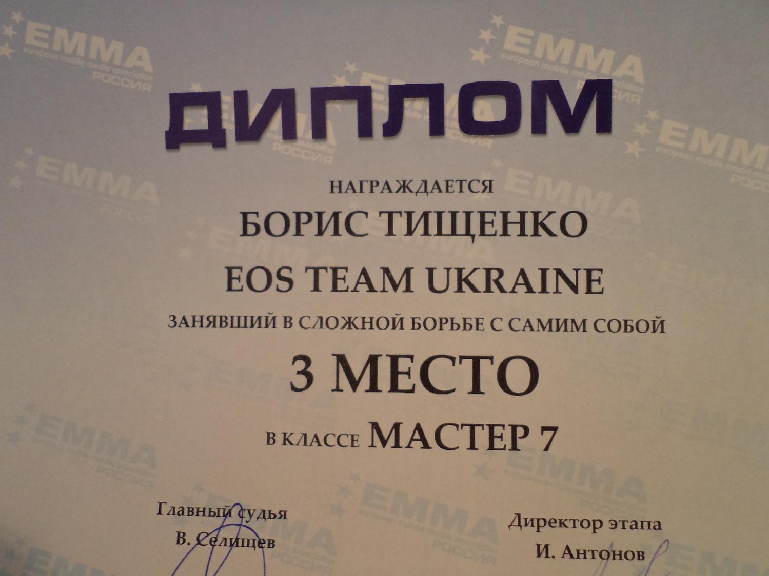 Борис Тищенко 1-е место в классе Мастер 7. Наши поздравления