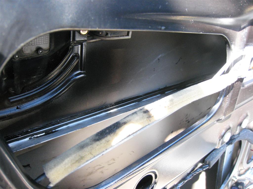 Построение системы начал с подготовки передних дверей. Метал в Ауте на удивление прочный и потолще, чем у большинства современных машин! Может это потому, что это мой первый кроссовер. Просто в работе нет ощущения, что работаещь с фольгой. В своей работе, многое перенял из работ Олега Самонова, за что ему огромное спасибо. Двери мылись, потом на стекольный герметик с использованием праймера устанавливались алюминивые уголки для придания жесткости наружной филенке двери (по три на каждую дверь). Технологические отверстия в дверях на Ауте намного меньше, чем на Туксоне. Это конечно с одной стороды плюс (жесткость конструкции), но и минус – сложно просунуть почти метровый уголок с намазанным герметиком. Но если не спешить, даже руки растущие из одного известного места справятся с поставленной задачей!