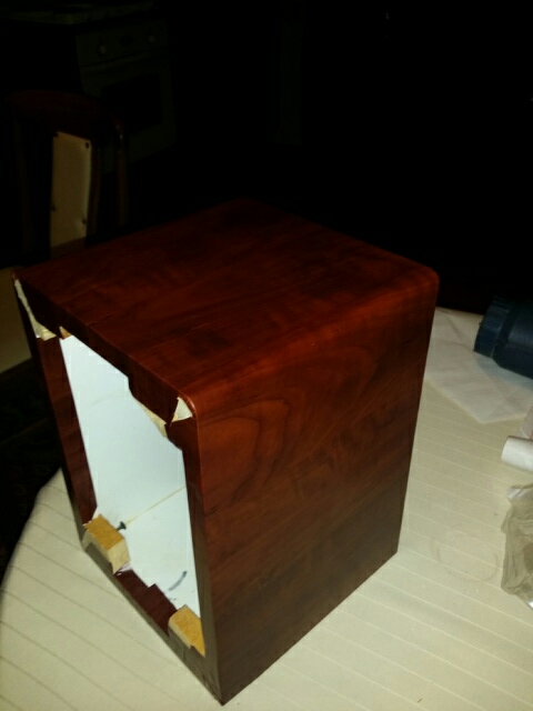 Собрал динамики по звуку очень нравятся, ну просто не нарадуюсь. Объём около 9 литров на каждый, корпус МДФ 19мм, лицо пилилось на ЧПУ, торцы сам подрезал, шпаклевал и выводил руками, остольные детали на пилораме. Сборка на жидкие гвозди и саморезы (с разным диаметром сверления и фаской, после зашпаклёваны). Обтянул плёнкой DC Fix. Фазики AZ audiocomp AR 40 35*150 мм (выдвижное колено пока не ставил). Пищики SB26STCN. Мидбас Peerless HDS 830813. Кросы Alpine SPX-177R (валялись без дела). Саморезы пока обычные но уже заказал с ебея с круглой головкой под 6-гранник чёрные. Усилитель Yamaha CRX-330 - пришлось добавить AUX. Кабель везде DLS 2.5 кв а на пищики от кроса van den hul bridge. Межблок пока обычный (потом займусь). В компе стоит Creative Audigy2 ZS ещё та правильная с позолоченными разъймами (фронтальній канал доработан лично мной - менял операционник, кондёры по питанию ...... ) Фотки выложил. Всё это делалась только ради детализации и тонального баланса,даже на не большой громкости. Вроде получилось звук детальный без лишних преукрашений. Наполнения (синтепон) пока нет, так что игратся ещё можно. Последний раз редактировалось profd; 25.04.2013 в 20:11. |