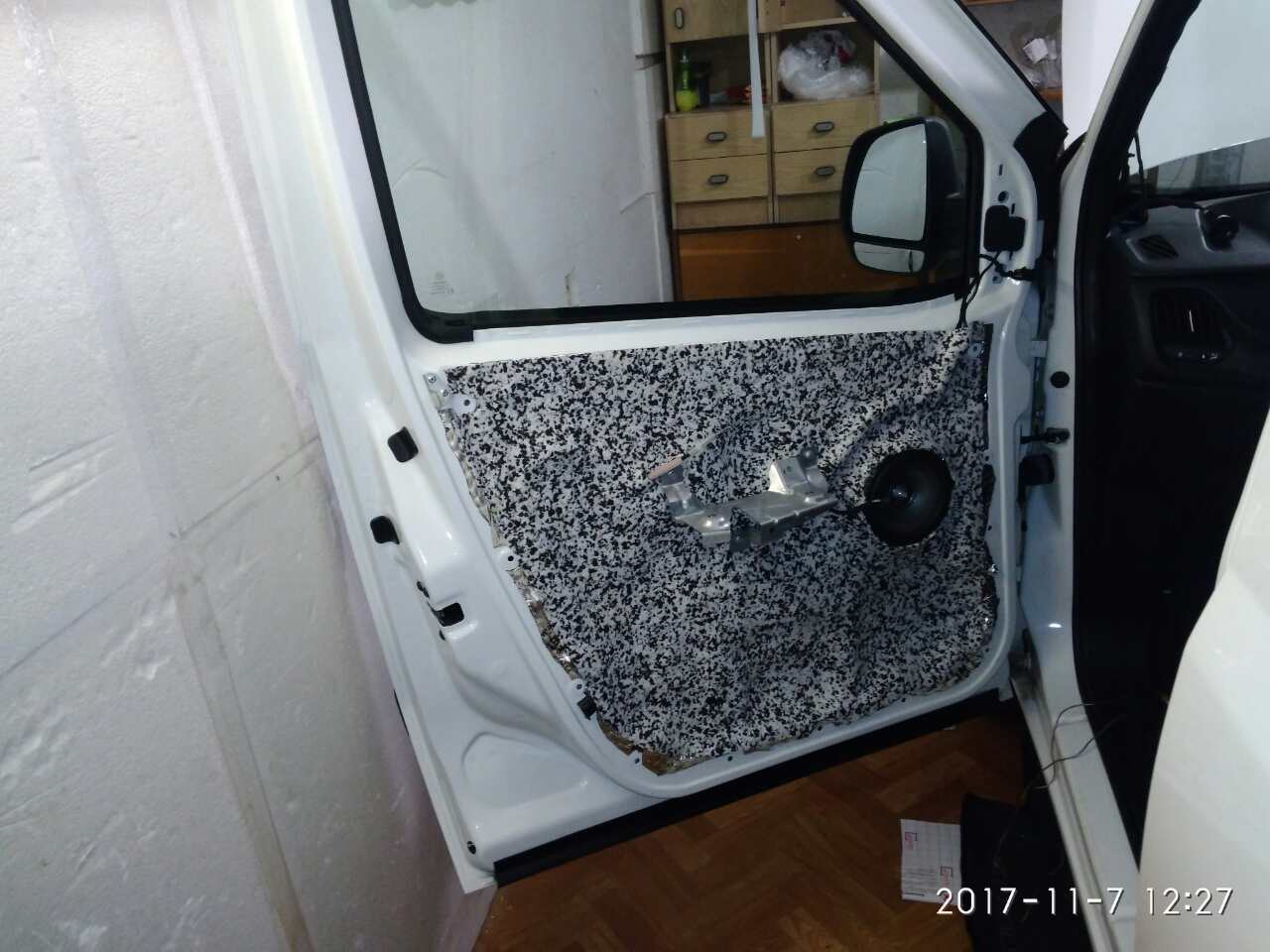 Большие отверстия двери, перед проклейкой виброй, необходимо было закрыть жёстким листовым материалом (аллюминием, фанерой, алюкобондом или т.п. материалом)