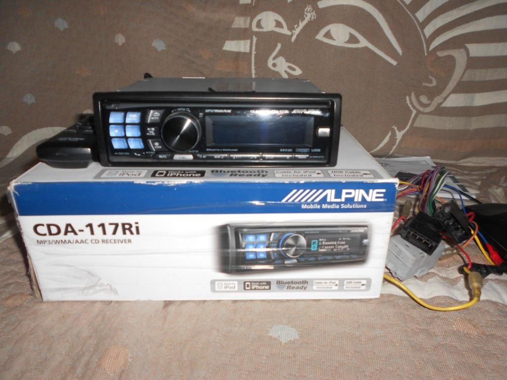 Продам Alpine CDA-117Ri, состояние внешне на 4, как всегда на алпайнах затерты клавиши питания и навигации, в остальном все на 5 к работе претензий нет, диски флешки читает отлично, в комплекте коробка, инструкция, диск, пульт, футляр для панельки, провод для ирода, рамка.