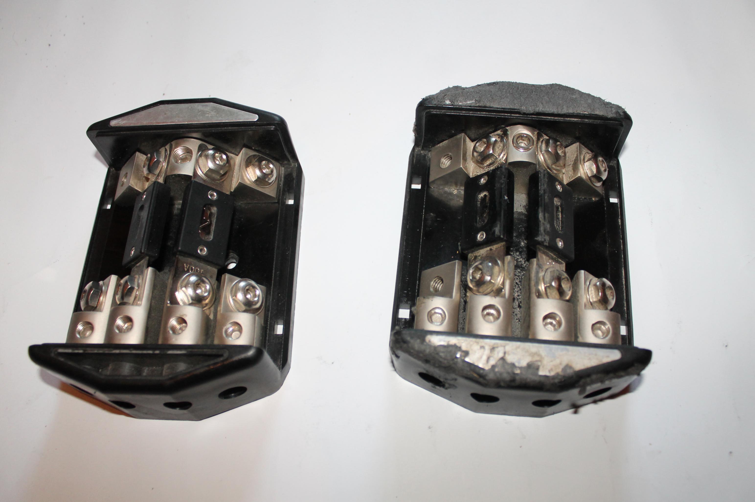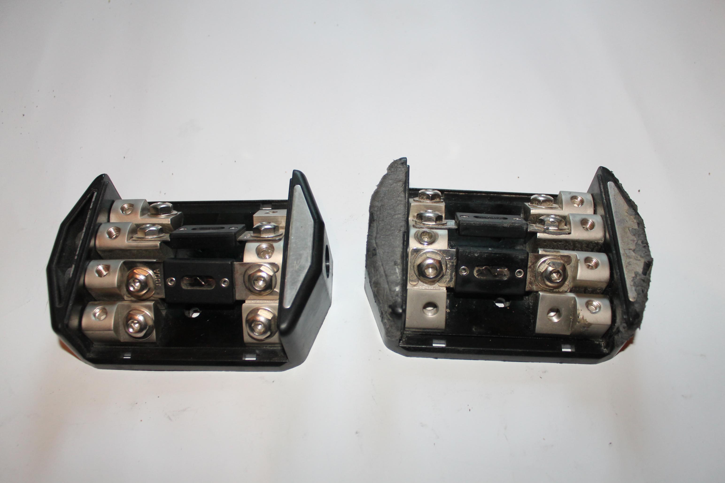 В наличии два шт. без крышек. без названия. Достаточно масивные, в каждом по два преда на 100А.