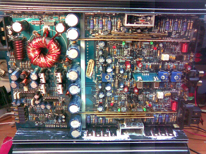 Аппарат двухканальный, параметры по мануалу: SPECIFICATIONS VR209 Idle current 1.4A Distorsion-THD (1KHz-90% Out) 0.06% Cont. out power (2x4 Ohm- 13 Volt) 110W Mono out power (4 Ohm - 13 Volt) 400W Band width (-3dB) 3Hz-75KHz Signal to noise ratio (A) 105 dB По интернету отзывы были, что это лучший усилитель в Европе 1995 года в категории до 1500 Евро. Хозяин был приятно удивлён качеством звучания и хотел его ещё улучшить. Посмотрим… После вскрытия и разборки оказалось, что я держу в руках классный усилитель. Такой схемотехники очень даже немного в нашем автозвуковом сообществе. Судите сами: стабилизированный блок питания (при подаче питания 12В и выше) на строенных полевиках и с отдельным выпрямителем для питания выходного каскада (+-35В) и предвыходных каскадов (+-45В), CLC фильтры во всех выпрямителях, дополнительные стабилизаторы предвыходных каскадов (+-40В), отдельные для каждого канала, стабилизаторы +-15В для питания операционников входной части. Строенные выходные транзисторы усилителя, специальный выходной комплементарный каскад, симметричная схема усиления на двух дифкаскадах транзисторов разной полярности. Отсутствие конденсатора в цепи обратной связи усилителя: Audison спокоен за свои изделия! Всего три переходных конденсатора в цепи сигнала, зато какие: ELNA Cerafine! Два из них смело можно убрать – они нужны для схемы mute, но хозяин специально попросил восстановить эту часть схемы. Операционники NE5532 тоже говорят сами за себя. |