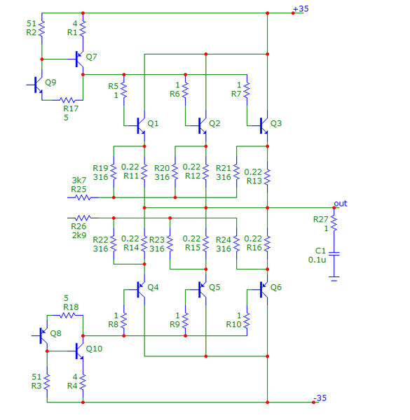 А теперь схемы. Не всё, а только то, что я нарисовал по плате. Выходной каскад: |