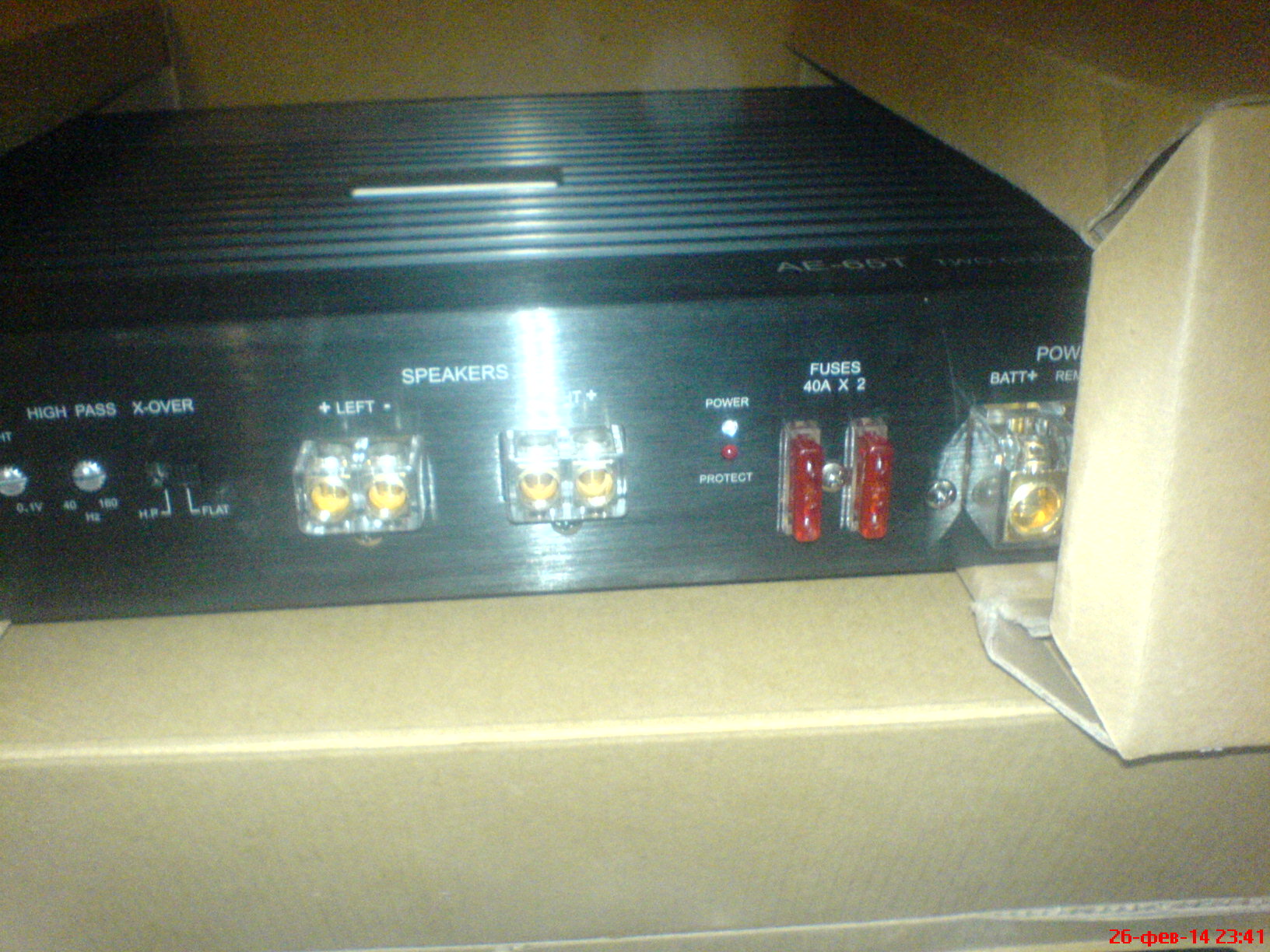 E.O.S AE-65T новенький в коробочке,не устанавливался,1200грн торг 8) ...E.O.S AE-65T: Усилитель класса HI-End, работает в Real Class AB. Комплектуется сдвоенными мощными (125 Вт) комплементарными биполярными транзисторами фирмы Sanken (Япония), электролитическими конденсаторами фирмы Rubycon (Япония), операционными усилителями ОРА 2604 фирмы Burr-Brown (USA) или AD-712 (USA). Операционными усилителями JRC 5532 (Япония). Технические характеристики E.O.S AE-65T: Каналов: 2 Номинальная мощность (RMS), 4 Ом: 2х120 Вт Номинальная мощность (RMS), 2 Ом: 2х190 Вт Частотный диапазон: 20 Гц - 20 кГц THD: < 0,04% ( 1 кГц ) S/N: > 95 дБ Коэффициент демпфирования: > 200 Входное сопротивление: 47 кОм Входная чувствительность: 0,1 - 8 В Фильтр ВЧ: 40 - 160 Гц Предохранители: 2х40 А Ток холостого хода: 0,76 А Макс. ток потребления: 84 А Размер ДхШхВ: 360х240х59,5 мм Вес: 4,8 кг