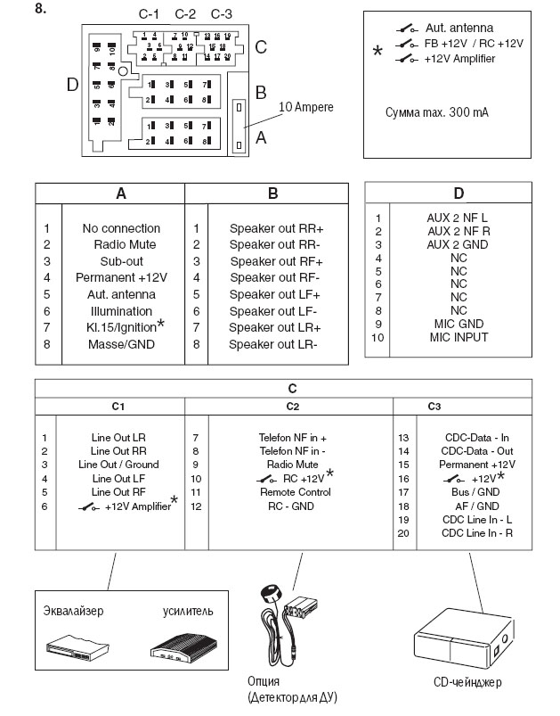 В общем есть девайс бремен 74 без линеек. Купил линейки с 4-мя выходами. Осталось вывести только саб. Может кто знает распиновку? В оригинале должно быть так http://www.bluespot.co.uk/car-audio....001512-adaptor . Получается что два контакта вроде идут на колодку питания, вот только куда?.