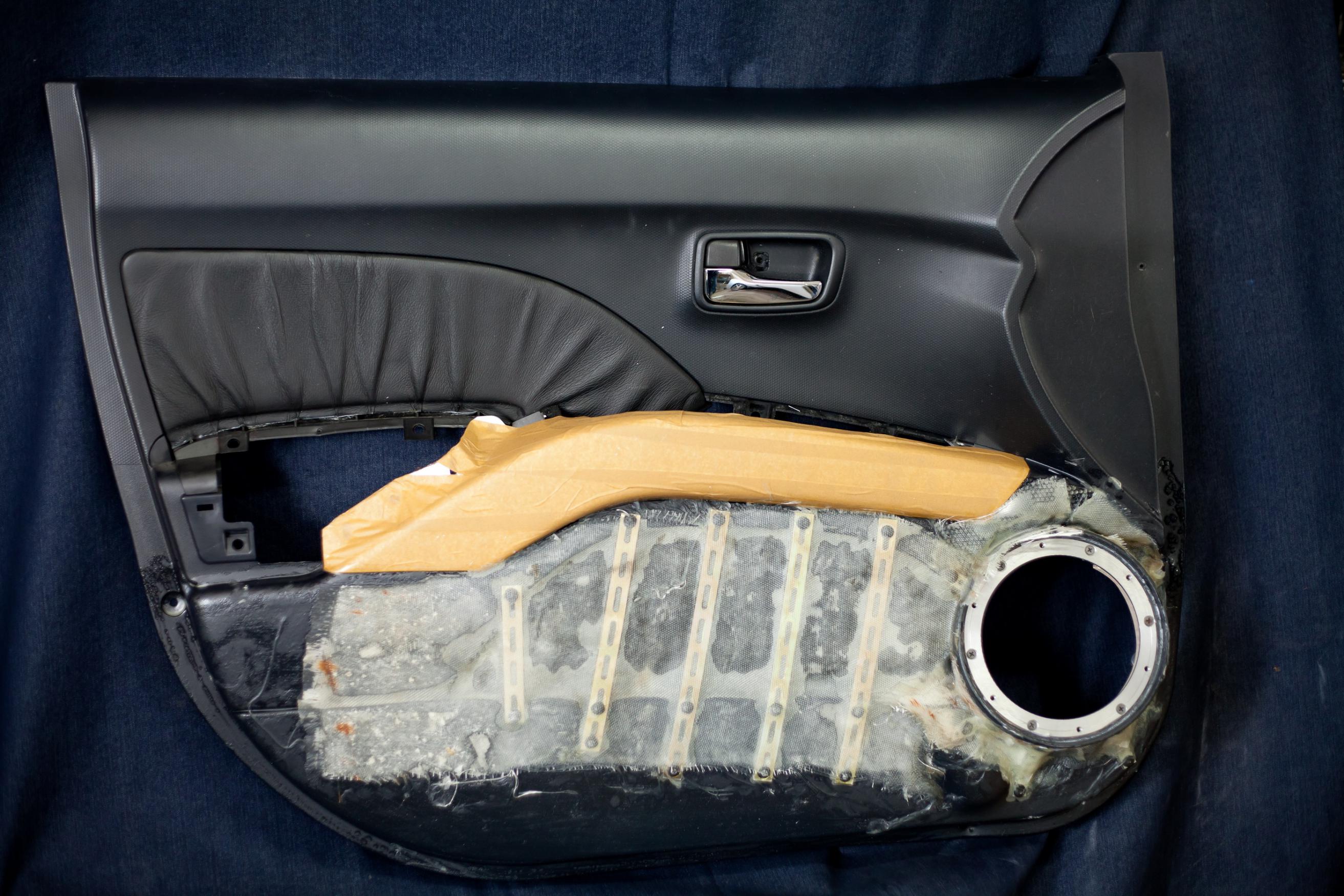 Окончательный вариант - заглушить, зашпаклевать и обшить алькантарой, вот что получилось: