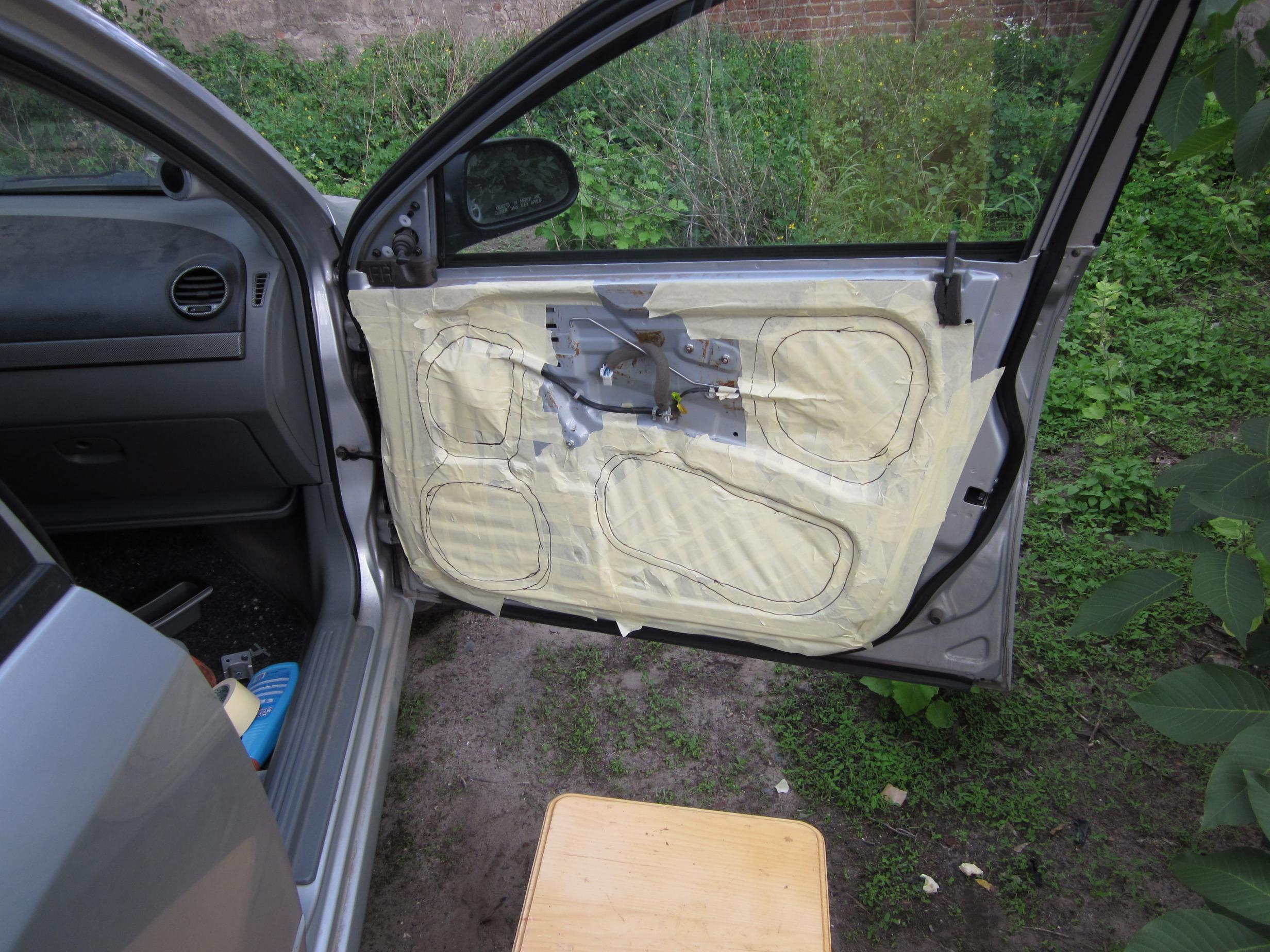 На данном этапе расшумованы внешние филенки дверей и идет подготовка к построению аккустического оформления для мида, в планах: 1. Закрыть виброй все пробелы на внутренней филенке 2. Закрыть стеклопластиковыми панелями все большие отверстия на внешней филенке 3. Забабахать "безтонельное" крепление для мида 4. Скорее всего заморочусь с лотками для яиц(или чем то подобным) Короче дали буде... |