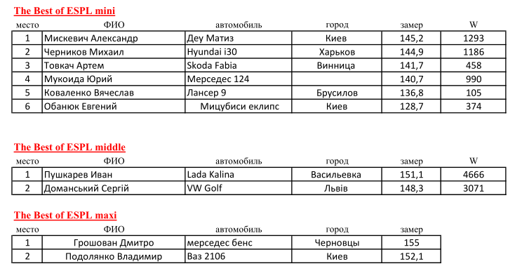 Вдруг кому интересно, сколько у кого ватт "летело" на замерах Best Of ESPL mini и middle.