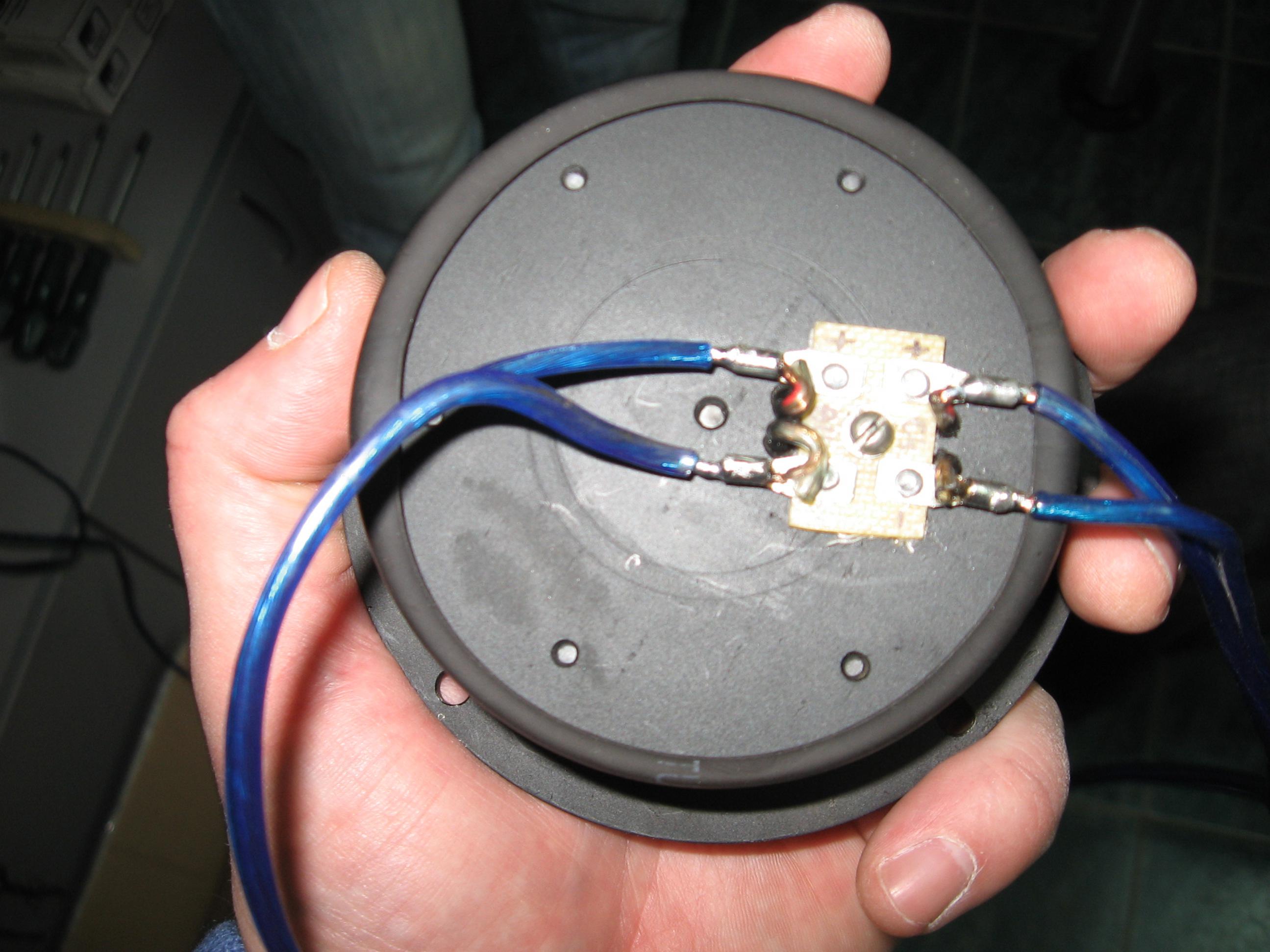 А вот и долгожданная (почти месяц ждал комплект с улучшенными характеристиками) СЧ-ВЧ изодинамика, из-за которой тема началась. Перед подключением я получил инструкцию от изготовителя: ВЧ подключать в противофазе по отношению к СЧ, что и было внимательно сделано.