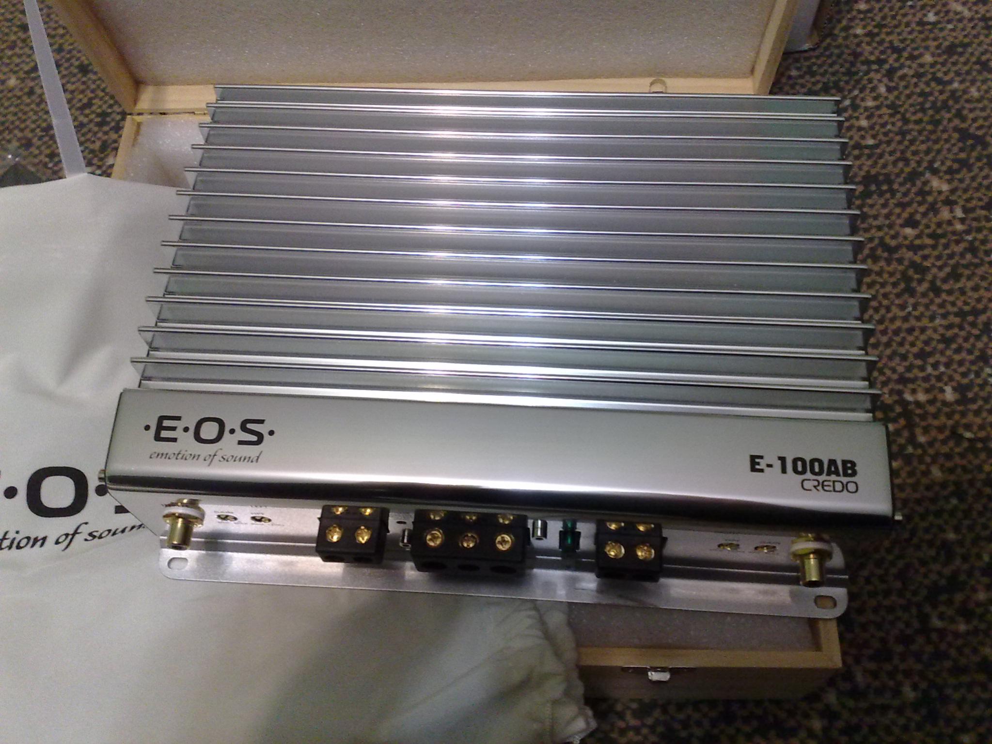 Вчера наконец прогрелся мой ЭОС 100АВ и появилась возможность перенастроить систему. Усилитель даёт красивый, ровный, по-домашнему приятный и очень детальный во всём диапазоне звук, даже не пришлось задействовать эквалайзер на моём Кларионе 778. Качество изготовления - на высоте, так что свои деньги отыгрывает до копейки. Теперь надеюсь, что к СЧ/ВЧ звену, на который работает данный усилитель у судей на соревнованиях претензий будет значительно меньше
