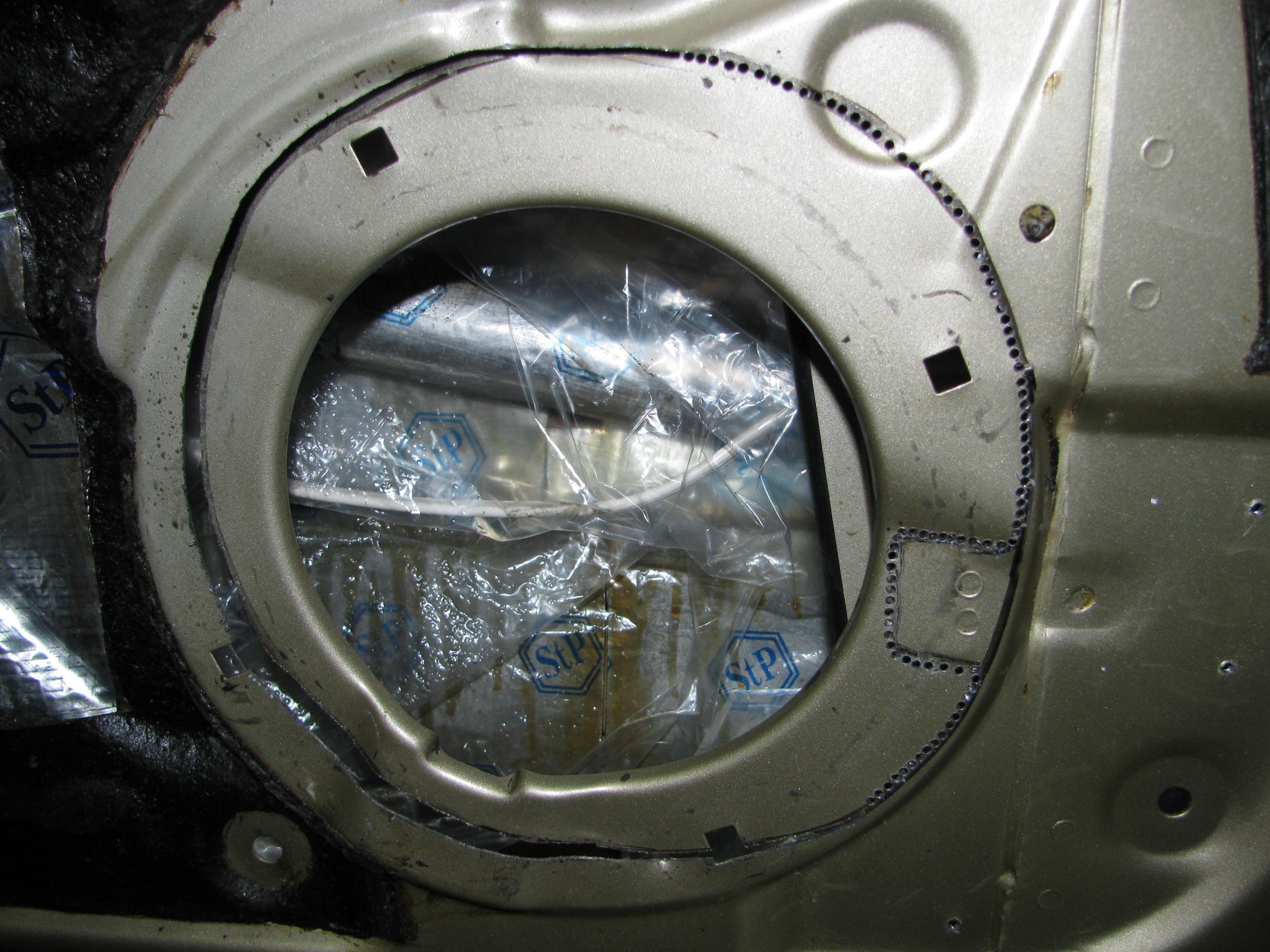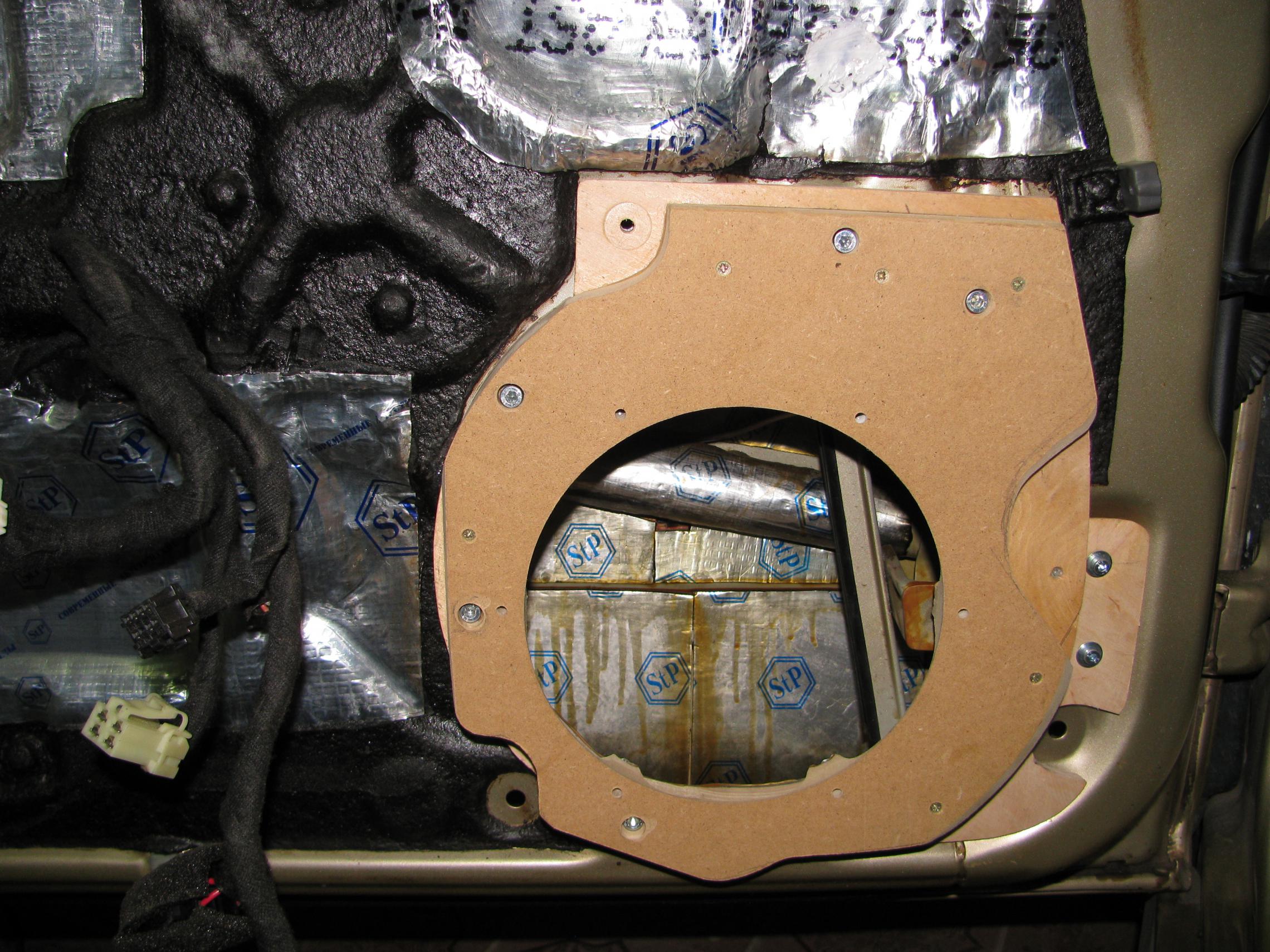 Двери еще не закончены, но поскольку про них заговорили,расскажу о процессе. Для начала определил на сколько смогу увеличить отверстие под динамик...