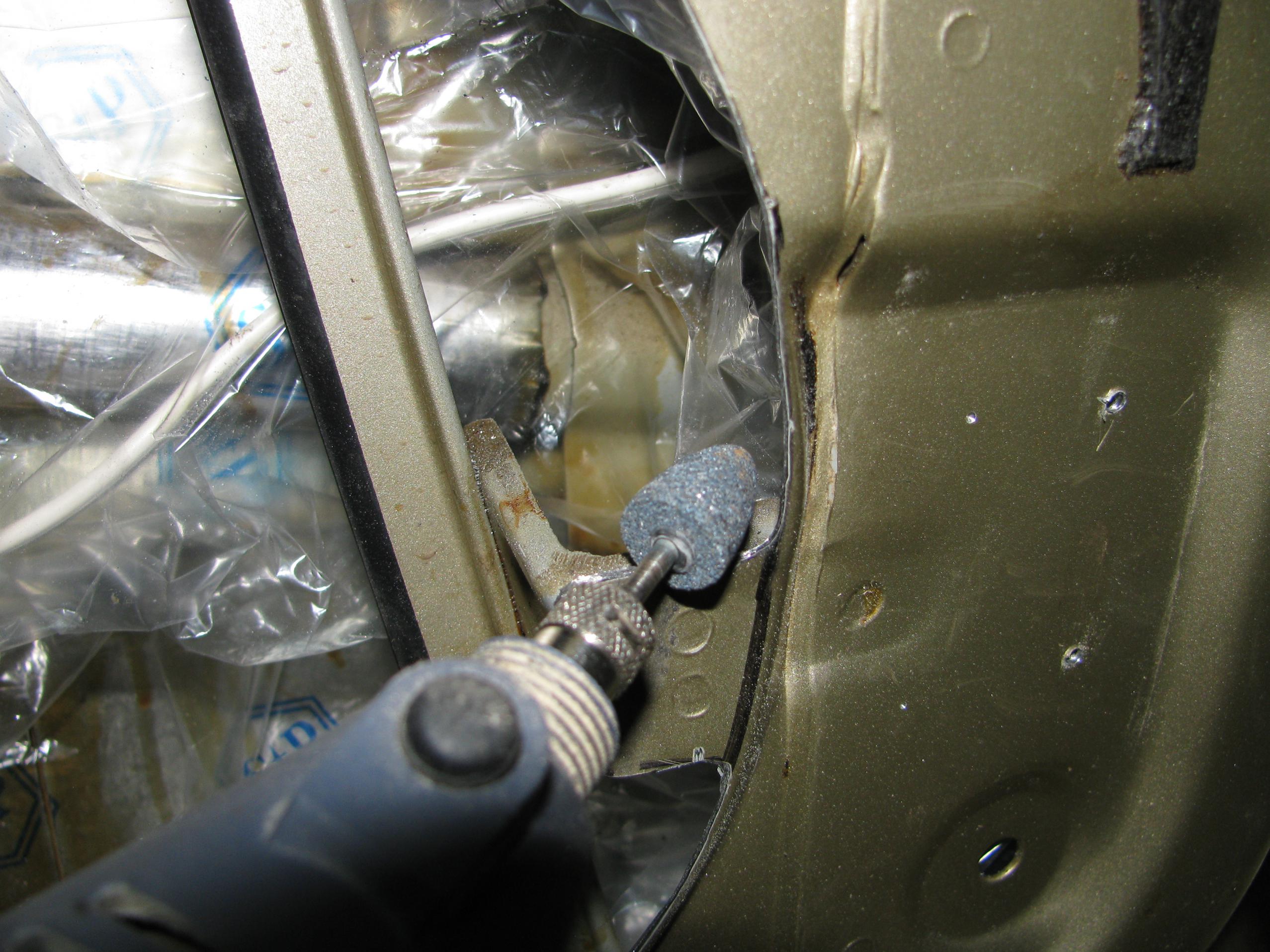 ![]() Електролобзик і пилка по металу. Там де заважають внутрішні конструкції дверей, типу направляючих для скла, іншими засобами - болгарка/ручна ножовка/тощо. |