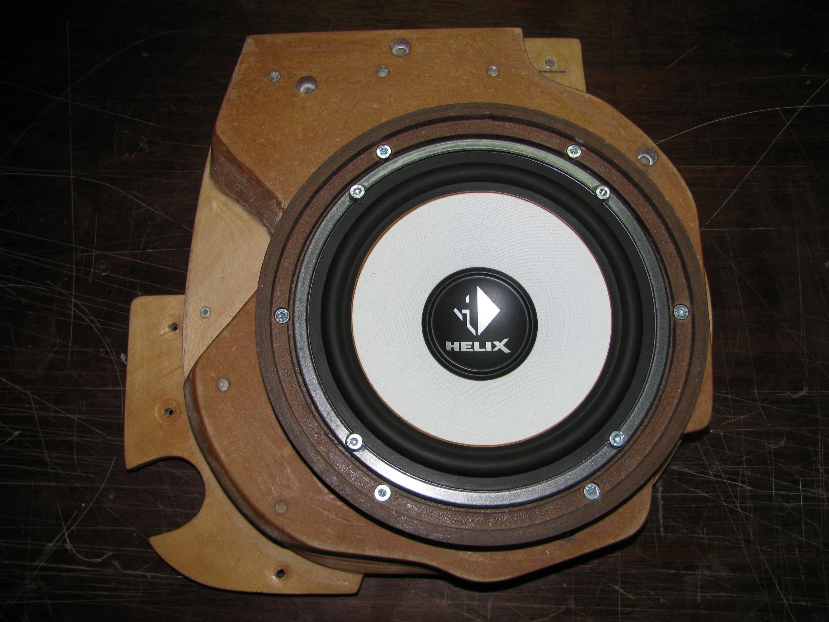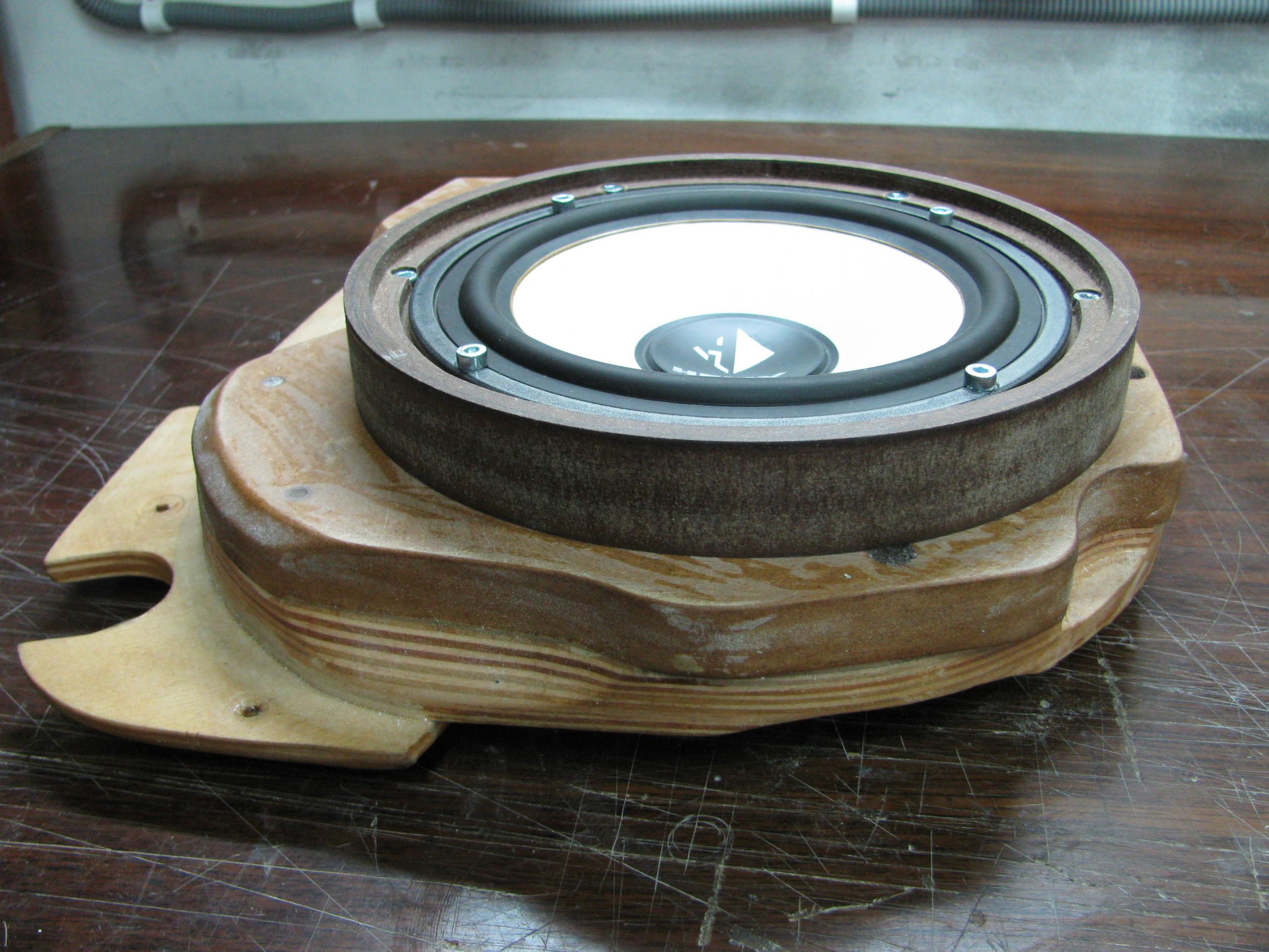 Туннель влияет всегда по разному, если говорить про Сонату и ее родном подиуме, который на первый взгляд кажется не так уж и плох, то проблема не только в туннеле за динамиком, там и перед ним небольшой туннель и родная сетка не самая просветленная. Да и еще филенка в этой машин не жесткая, прогибается легко. Вообщем все это вместе вылазит не равномерностью в середине(на слух неприятный резак) и рыхловатым мидбасом, но это не сильно выражено, больше страдает середина. Чуть можно исправить ситуацию если заменить штатный гриль, и в родном подиуме пролить все пустоты полиэфиркой со свинцовой дробью, в свое время так и делал, но это полумера, для нормального звука нужны более кардинальные переделки, чем собственно сейчас и занимаюсь, уже есть кое какие наработки, сейчас буду делится А раньше было так: