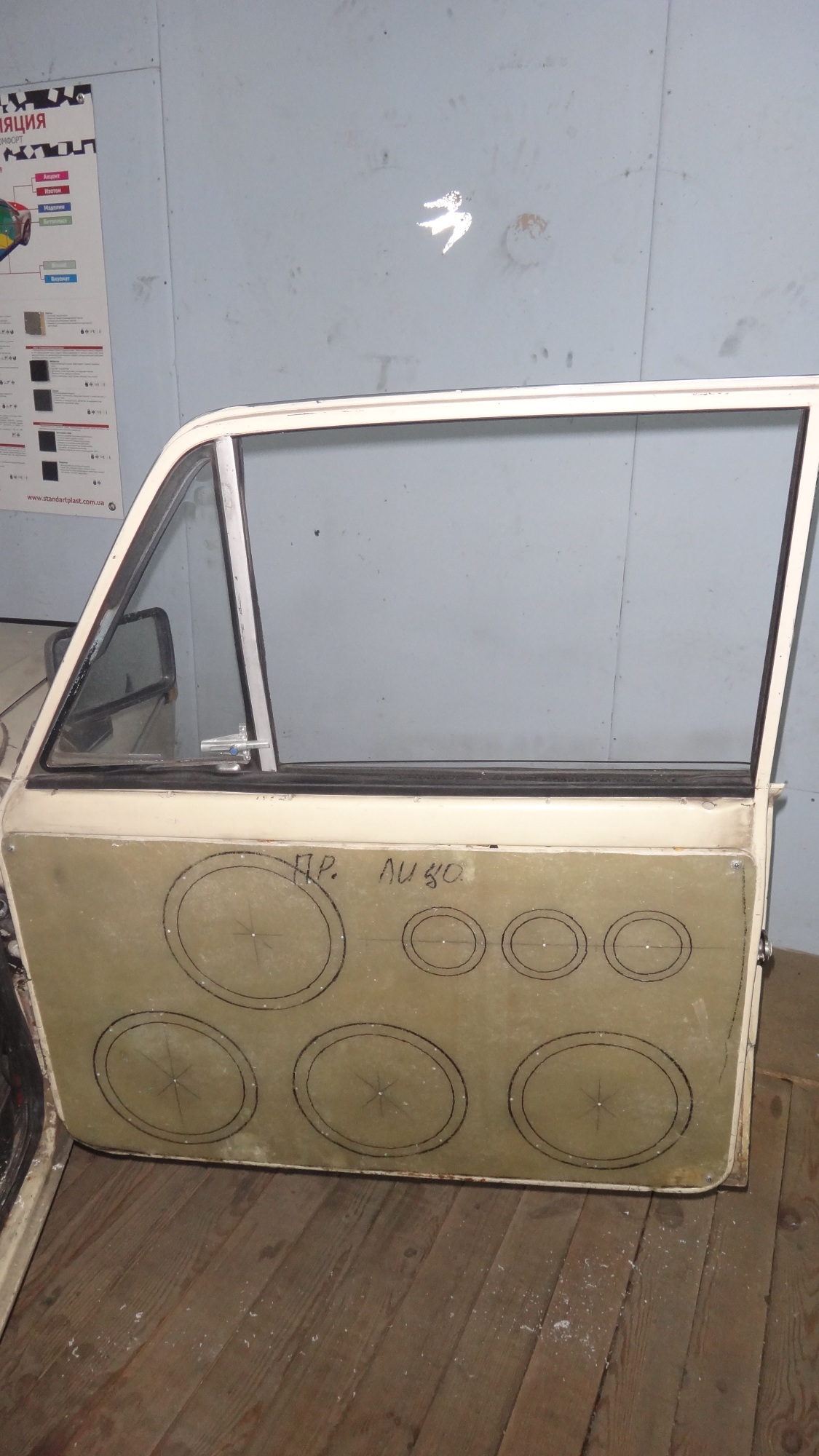 Хух поехали. Акустика, то есть динамики ( вуфера ) подбирались, под дверной объем, по предварительным ращетам приблизительно 40 - 45 литров с одной двери с подиумами, по итогу SP - 8 четыре штучки идеально подходят, им на четырех нужно корпус ФИ в 35 литров. Итак новые двери ( в процессе ) Фотки. |