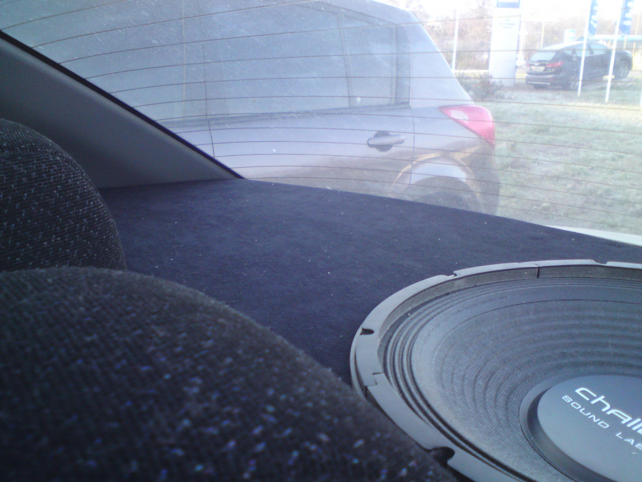 Еще три фоточи, тем же телефоном с не убранным салоном. И сразу вопрос: есть ли сетки именно под этот саб???, а то ребенок там 100% свой автопарк устроит