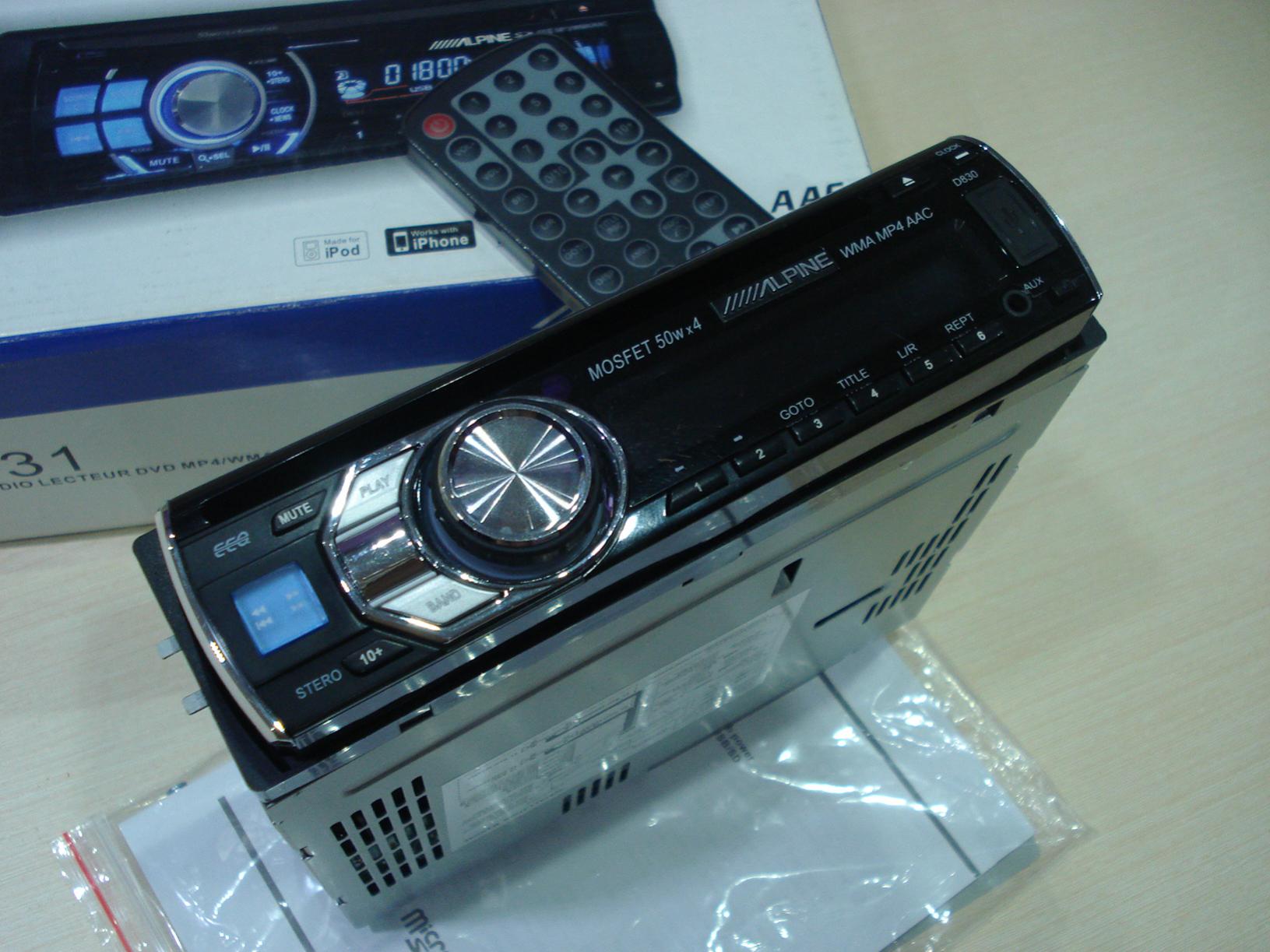 DVD Alpine D830 MP3+MP4+DVD+VCD+WMA Съемная панель - 4х50Вт - многофункциональный пульт ДУ - usb 2.0 порт SD/MMC слот, поддержка до 8Гб,воспроизведение DVD+MP4+VCD+MP3+WMA форматов - FM радио - 18 предустановленных станций Выключение с автозапоминанием функций тюнера и SD/MMC/USB режима - предустановленный эквалайзер Ручная регулировка ВЧ и НЧ - линейный выход RCA - Читает все аудиоформаты. -Возможность подключения iPhone/iPod -2 выхода с предусилителя, -AUX 3.5mm |