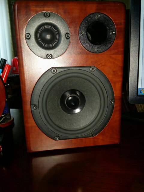 Собрал динамики по звуку очень нравятся, ну просто не нарадуюсь. Объём около 9 литров на каждый, корпус МДФ 19мм, лицо пилилось на ЧПУ, торцы сам подрезал, шпаклевал и выводил руками, остольные детали на пилораме. Сборка на жидкие гвозди и саморезы (с разным диаметром сверления и фаской, после зашпаклёваны). Обтянул плёнкой DC Fix. Фазики AZ audiocomp AR 40 35*150 мм (выдвижное колено пока не ставил). Пищики SB26STCN. Мидбас Peerless HDS 830813. Кросы Alpine SPX-177R (валялись без дела). Саморезы пока обычные но уже заказал с ебея с круглой головкой под 6-гранник чёрные. Усилитель Yamaha CRX-330 - пришлось добавить AUX. Кабель везде DLS 2.5 кв а на пищики от кроса van den hul bridge. Межблок пока обычный (потом займусь). В компе стоит Creative Audigy2 ZS ещё та правильная с позолоченными разъймами (фронтальній канал доработан лично мной - менял операционник, кондёры по питанию ...... ) Фотки выложил. Всё это делалась только ради детализации и тонального баланса,даже на не большой громкости. Вроде получилось звук детальный без лишних преукрашений. Наполнения (синтепон) пока нет, так что игратся ещё можно. Последний раз редактировалось profd; 25.04.2013 в 20:11. |
