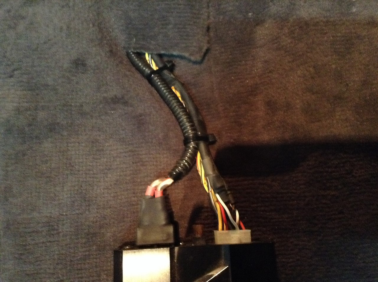 На фото видим правую сторону тоннеля (по ходу движения автомобиля). Собственно провод - под красной змейкой REM. В чёрной гофре : -Питание БП для ГУ -Се-NET для чейнджера. -"+" На ГУ Сюда же скорей всего будет добавлена и оптика, хотя думал её по потолку - хотел бы услышать все "за и против" БП для головного устройства - вход в термоусадку, крепиться через ковер болтиками - снизу просто планки с нарезанной резьбой. проход как всегда "заизолирован" по монатжу вопросов думаю нет. В сплене вырезаны квадратики и на самоклейки (скотч как правило отрываем и капаем туда жидкие гвозди). Некоторые просто прогревал хорошо и клеил. Есть фото как в нчале крепил (расстояние) потом как видим было добавлено ещё протяжка ну и увеличено количество площадок и стяжек. |