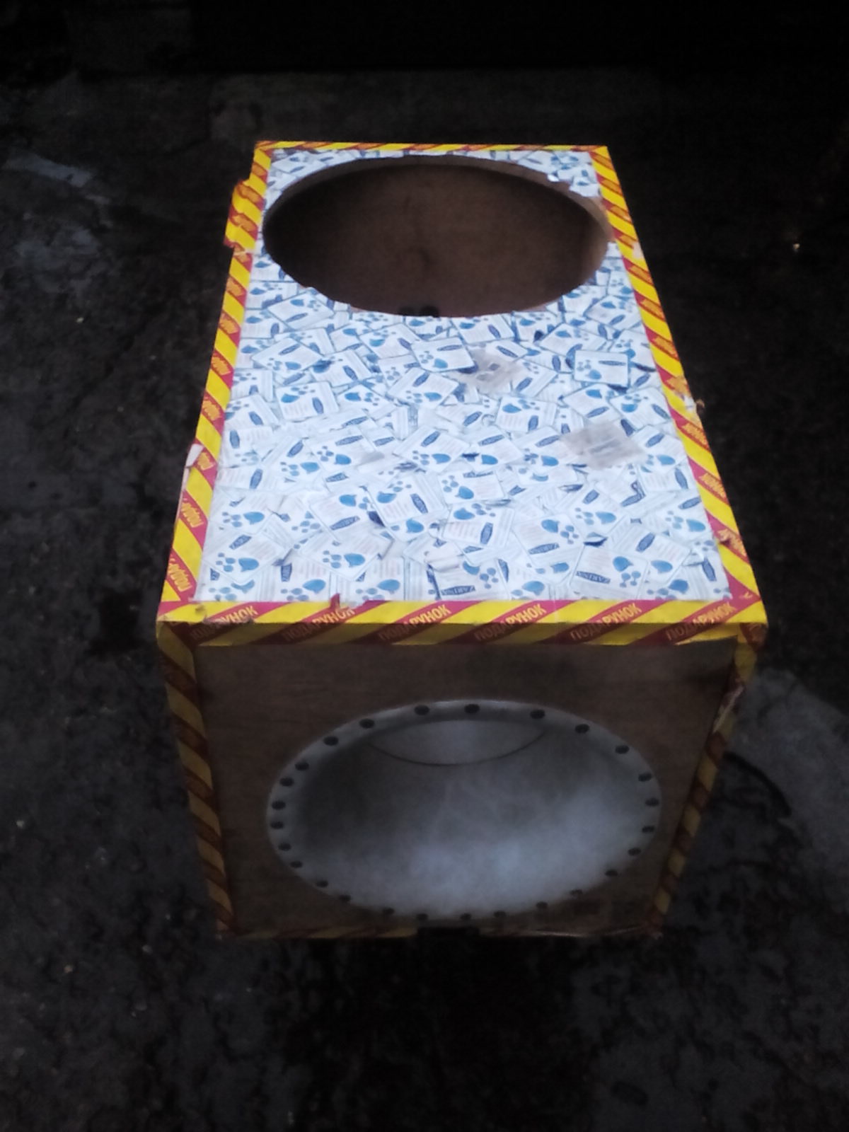 материал 15мм фанера, распиляно на станке , 200я ветиляционная труба с раскрывами. Настройка 38гц Ценник 600грн |