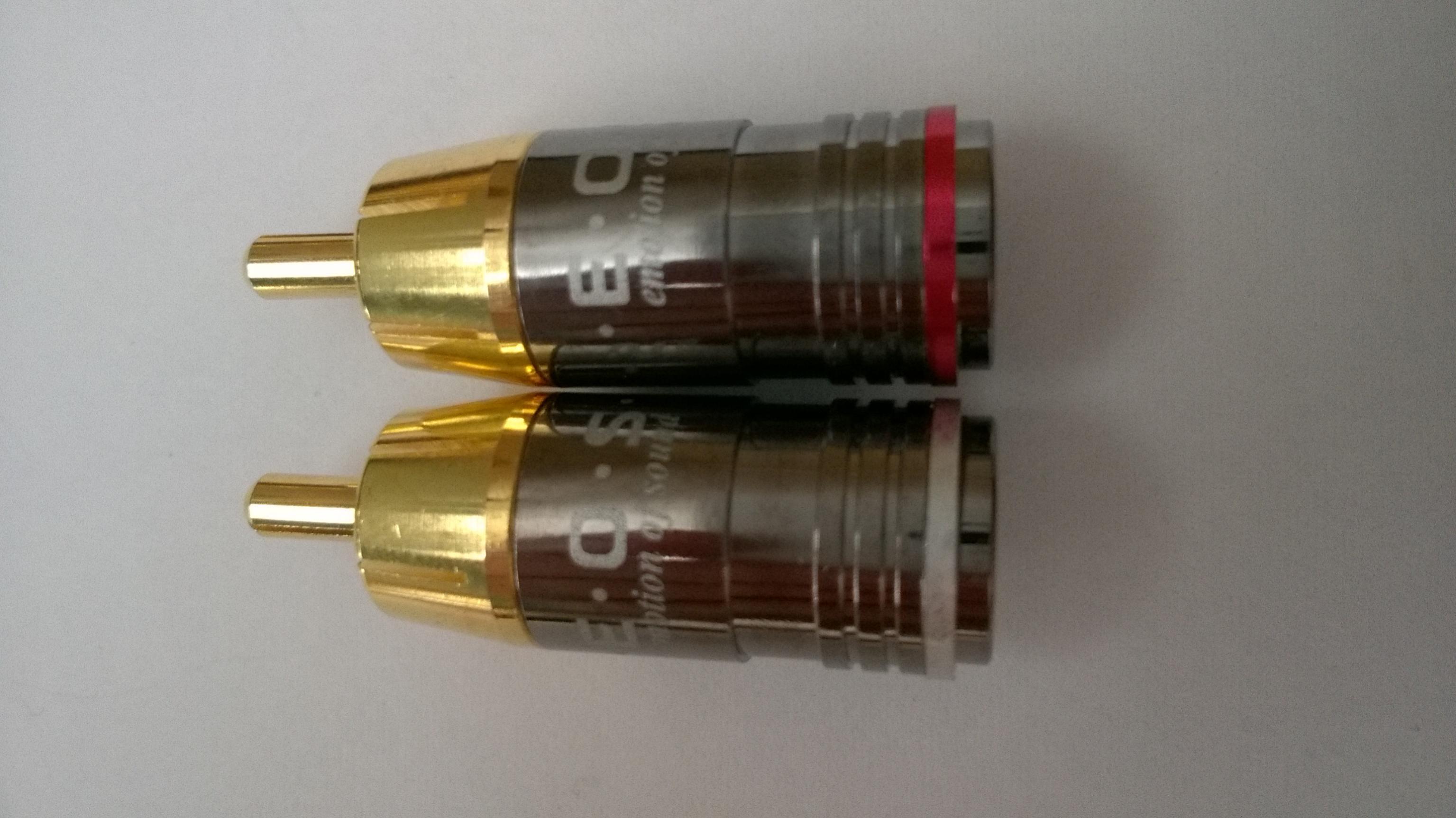 Для кабеля диаметром 8 мм. RCA-разъем класса HI-END Покрытие — золото 24 карата. Тефлоновая изоляция. Цена: 100грн за штуку! (https://avtozvuk.ua/info/25362#ixzz5In5ZRU5M) Отличное качество изготовления, без компромиссное решение с малыми установочными размерами и большим диаметром кабеля. Продаются парами. |