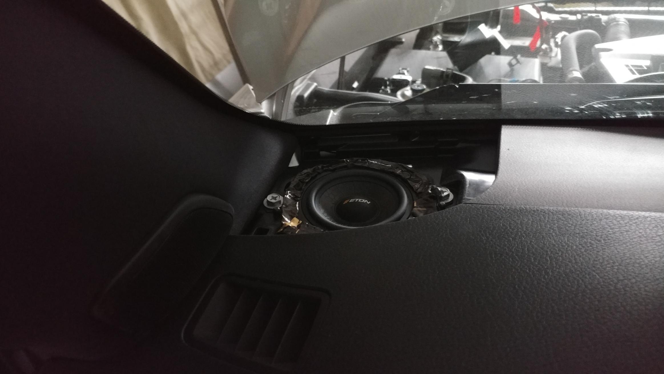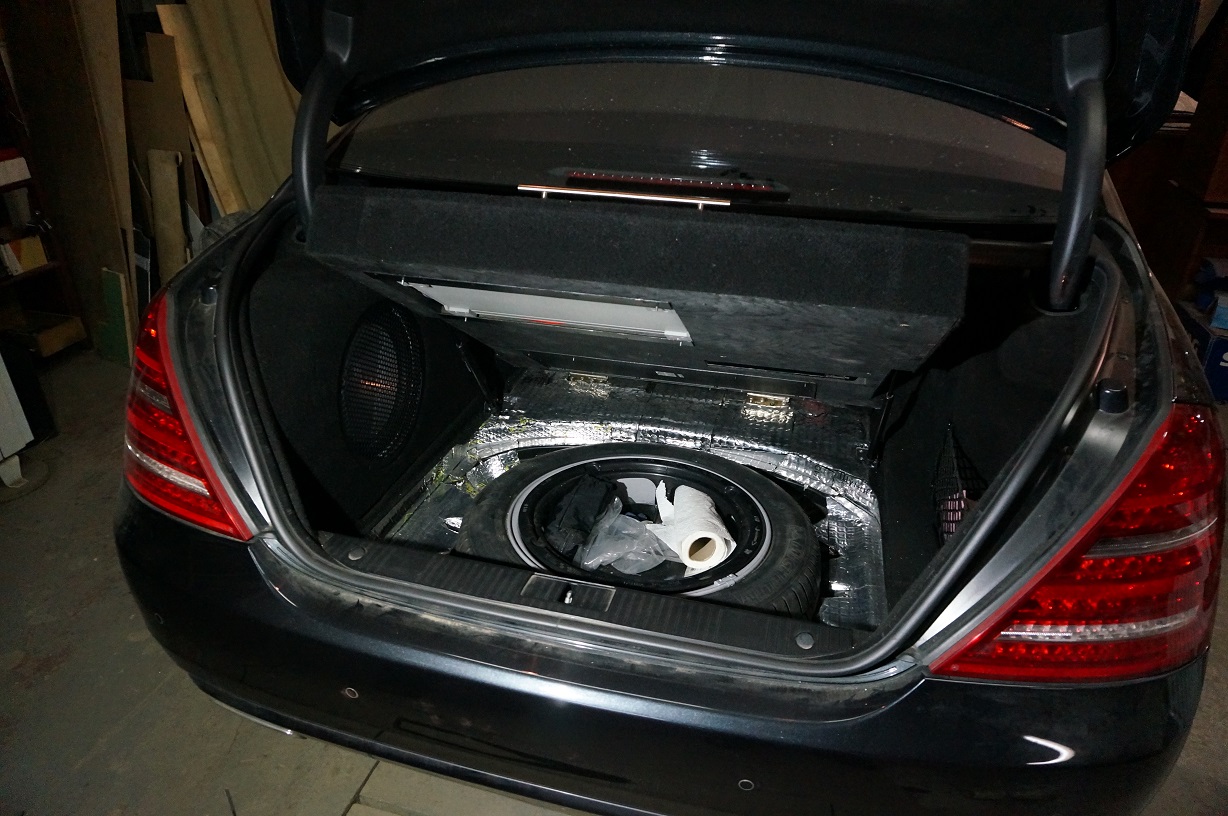 Звук в авто не меняли ( по словам клиента в системе установлено 19 динамиков, от кутюрье Bang & Olufsen ), но делаяя шумовиброизоляцию салона улыбнулись, увидя ОЧЕНЬ оригинальную конструкцию мидбаса))))