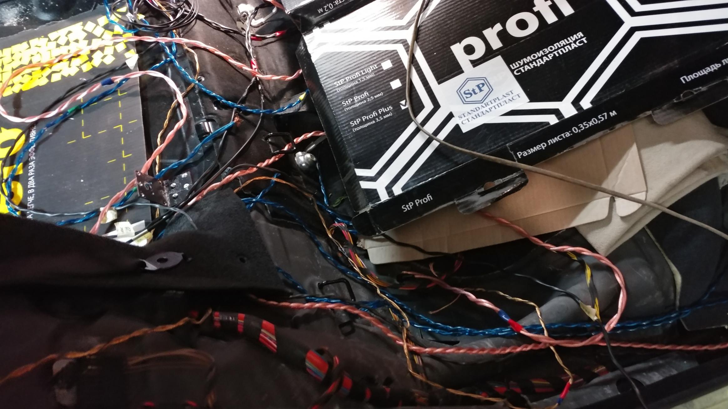 Панель с аппаратурой уже в авто...все провода и кабели подведены, идет монтаж...(после включения и проверок будут увязаны и уложены ) . СЧ динамики мощно закреплены на карте, идет монтаж и установка карт....