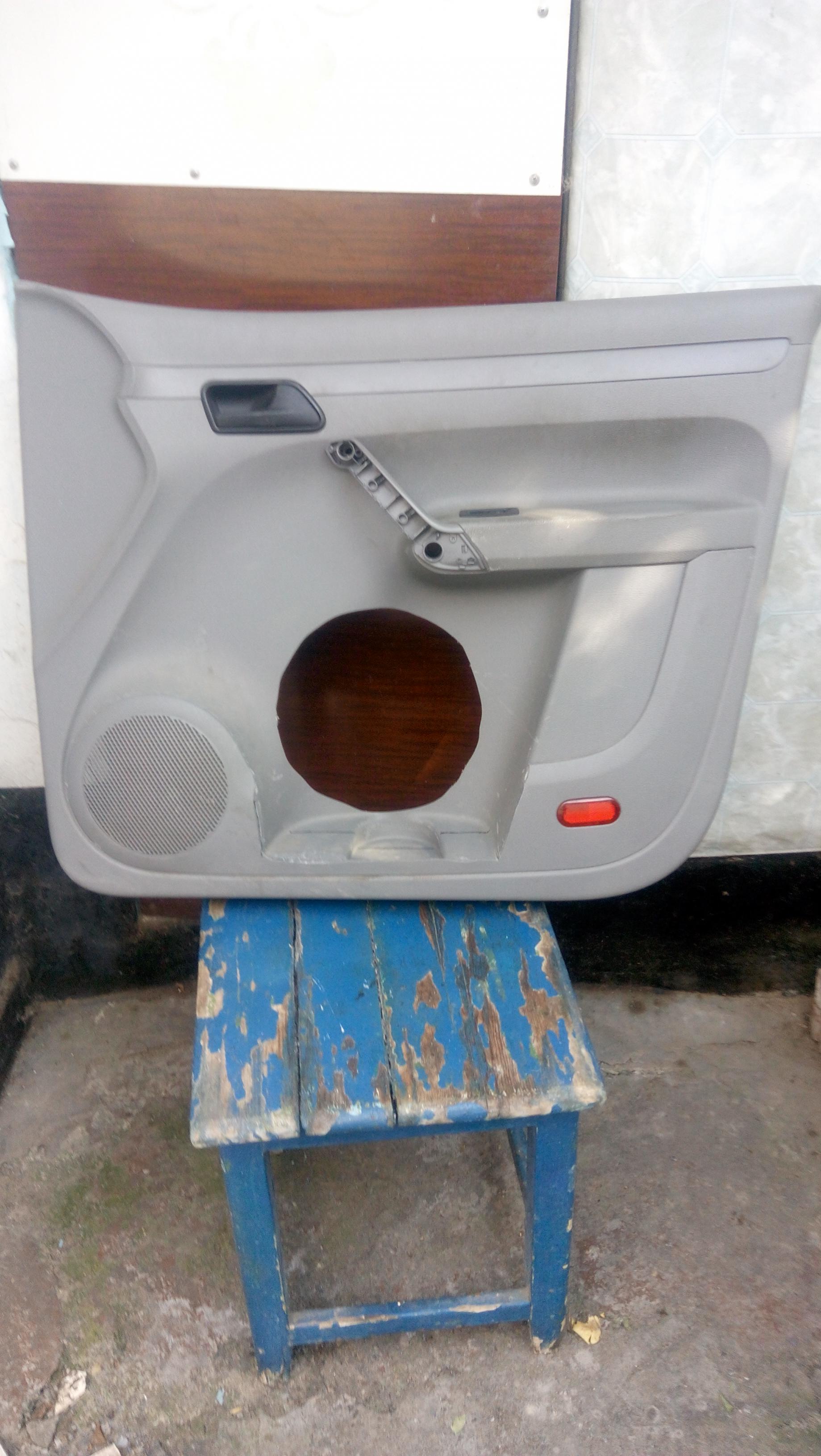 Привет мужики! Второй инсталл после kangoo 2000. Есть 2 опыт установки динамика в те места куда автопроизводитель почему-то не ставит. Авто фольц кадди caddy 2009 (модельный 2004-2010), начинаю делать проект трёх полоски, я тут нашел свободное место в двери, пилю дырку не снимая филенки! Филенка здесь сплошная, тонкая 1мм, почти без дырок! Дырки только под провода и для снятия стекла- 2 заглушки, их снял и с 2 сторон вибру наложил, нч делаю на щите 16мм, который крепится на 16 шурупов, вч+сч тоже на щите: