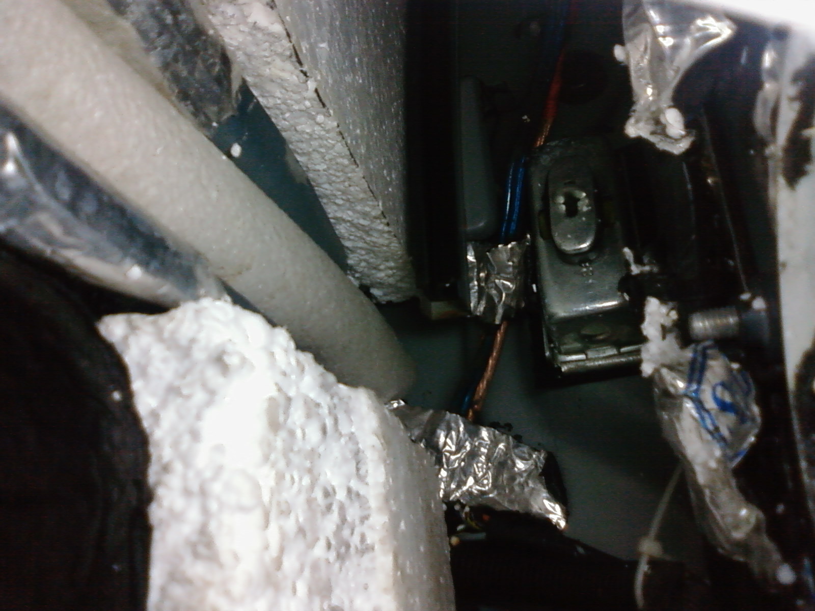 Дальше кубики из пенопласта (до самого стекла)... Вот как-то так... (фотка наружной стенки внутри двери)... |