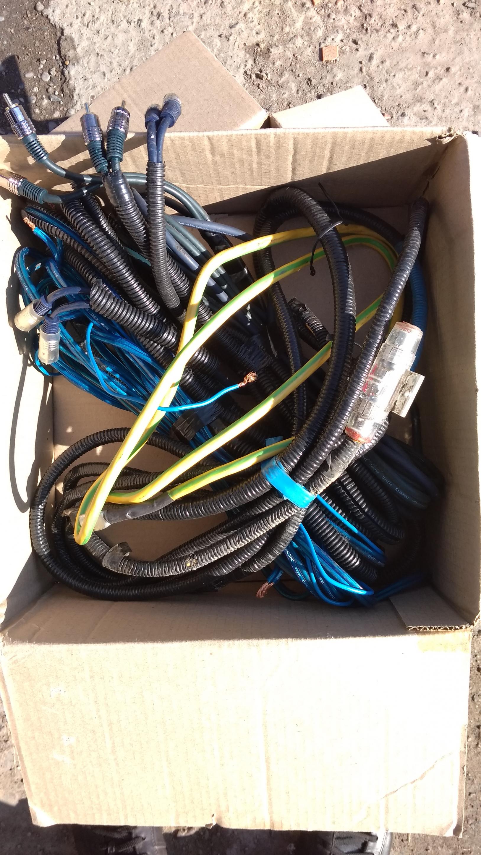 1. Межблочный аналоговый аудио кабель 2RCA - 2RCA DAXX R50-50 (5 метров) https://www.daxx-shop.ru/item.php?id=167 2. Межблочный аналоговый аудио кабель 2RCA - 2RCA DAXX R52-50 (5 метров) https://www.daxx-shop.ru/item.php?id=166 3. Акустический кабель (провод) из чистой бескислородной меди сечением 14 Ga (2х2.1 мм2) DAXX S34 (10 метров) https://www.daxx-shop.ru/item.php?id=119 4. Акустический кабель (провод) из чистой бескислородной меди сечением 12 Ga (2х3.5 мм2) DAXX S32 (1 метр) https://www.daxx-shop.ru/item.php?id=118 5. Силовой кабель ПуГВ 1х25 6 метров (наконечники обжаты гидропрессом) https://www.etm.ru/cat/nn/2975803/ 6. Предохранитель всё в гофре |