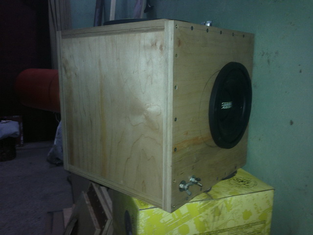 Материал стенок фанера 21мм, Дины 2шт. SA E8v.2, подключены в 4 ома. играет от 200ват и выше) настройка 54Гц. размеры 370*370. Играет здоровски. Динамики новые нигде до этого не стояли. Ценник 2100грн. По вопросам обращаться 099 499 77 4 девять Олег.