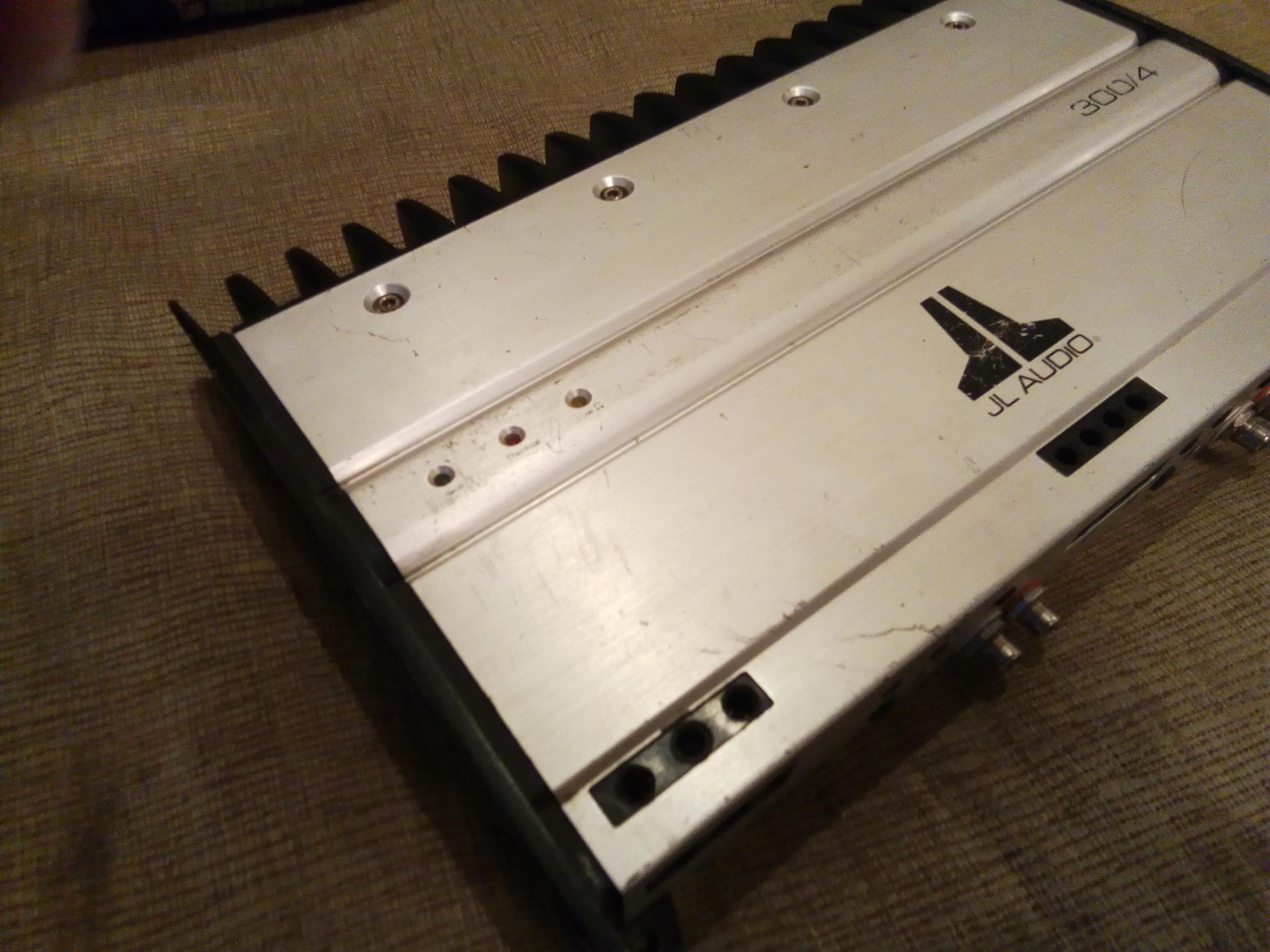 Продам JL AUDIO 300/4 Первой серии..Кореец. ..Замечательный звук . Работает все отлично .Регуляторы не хрипят. Отломано одно крайнее ребро (радиатор) на работу усилителя не влияет.Внешний вид на фото.