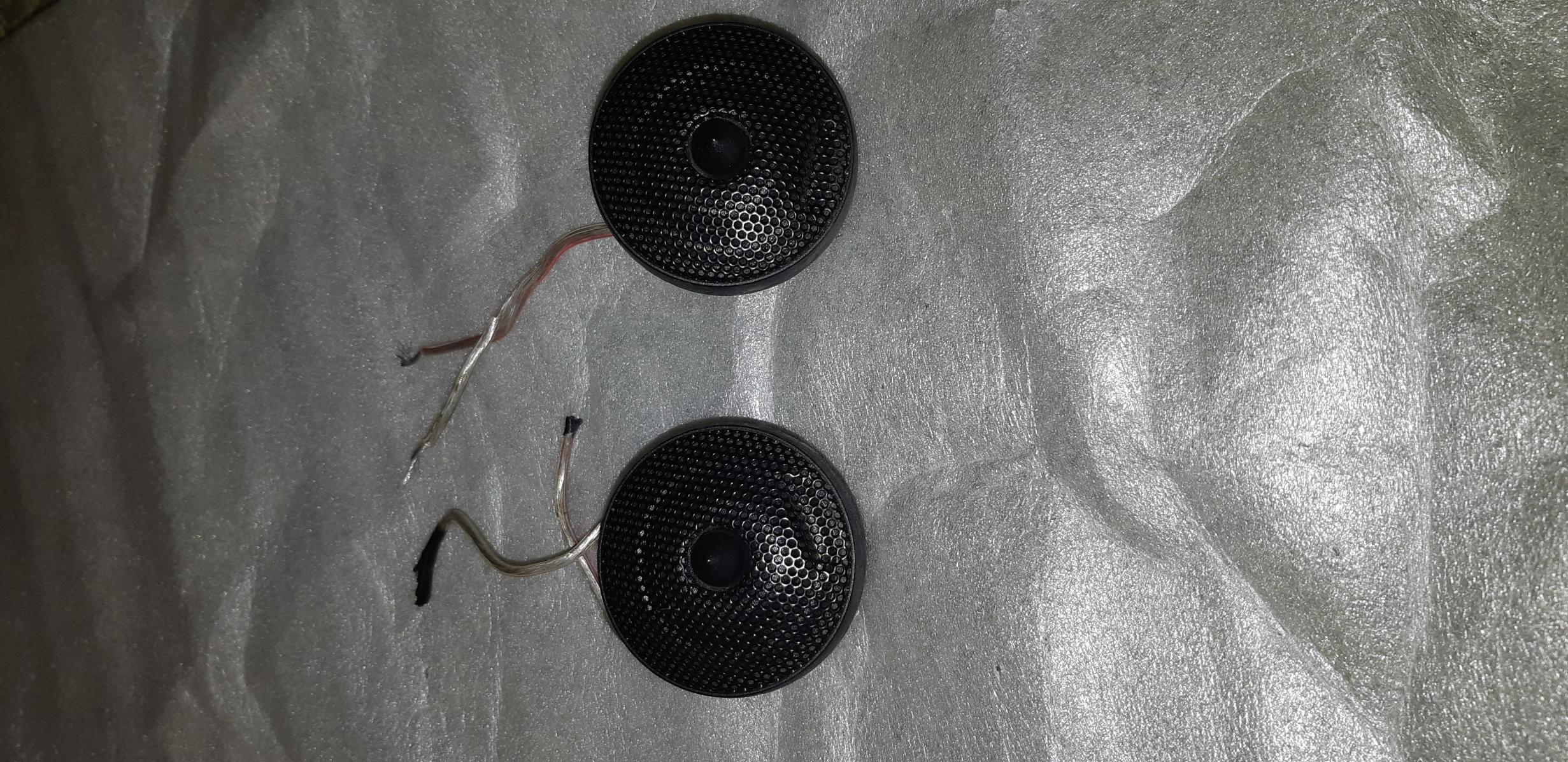 Комплект из двух динамиков, без корпусов (на фото). 2500 грн, торг. В подарок два уголка зеркал от Pajero Wagon IV с встроенными корпусами.