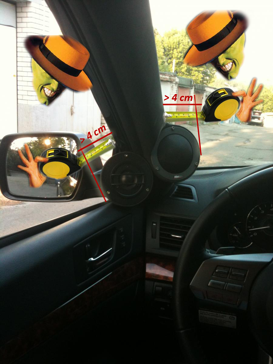 Добавлено через 12 часов 21 минуту Вот почитал... Как правильно трактовать? Чтоб на будущее знать... Просмотрел русские и украинские правила ещё раз... они одинаковые... В них написано, про 4 см... это относится к лобовому стеклу... и к боковым треугольным окнам... у меня их нет... А так же вот из правил: · Ни один элемент инсталляции не должен перекрывать обзор боковых зеркал, независимо от 4-х сантиметровой зоны. Если боковые зеркала установлены не заводским способом, салонное зеркало заднего вида должно давать полный обзор назад. Т.е. на боковые окна, если там нет треугольных окон правило 4 см не распространяется, лишь бы не мешало нормальной эксплуатации авто. Так же по ссылке с офф сайта. Говорится, что правило 4 см распространяется только на лобовое стекло и доп. треугольные окна, если они выше половины бокового основного стекла. А так же написано... Keep in mind the 4 cm rule covers only the visibility towards road environment. No detuction if a speaker (and/or other part of installation) is e.g. is 1 cm out of 4 cm Line but only covering the car. This rule is only applicable for the windshield. Дословный перевод с гугла Имейте в виду, 4 см правило распространяется только на видимость дорожных условий. Нет detuction если динамик (и / или другие части установки) является, например, 1 см от 4 см Линия, но только покрытие автомобиля. Это правило применимо только для лобового стекла. Если Эмма офис спросит... я выложу фото с водительского сиденья... Может я что-то не так понимаю? Последний раз редактировалось zav; 05.07.2012 в 11:44. Причина: Добавлено сообщение |