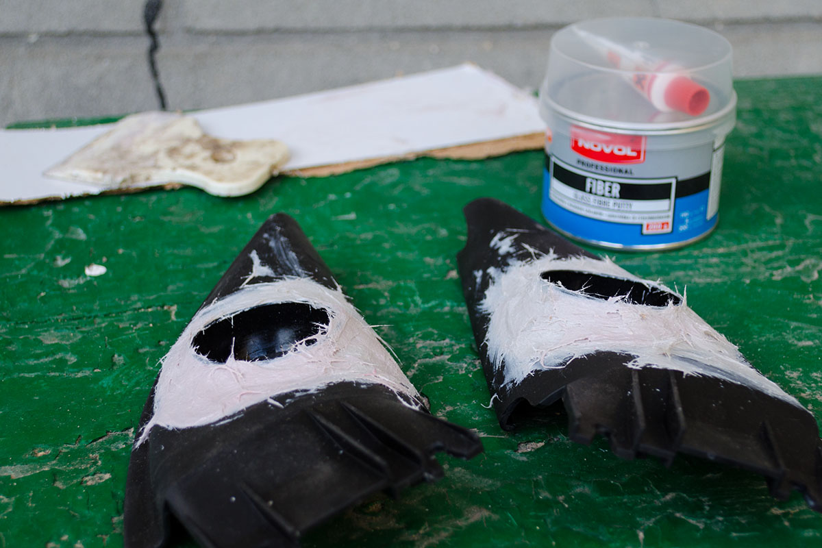 Демонтував з задньої полиці сабвуферний динамік і овали. Із за відсутності часу і необхідної кількості матеріалів було прийняте рішення укріпити ту поличку що є, заглушивши отвори від овалів. Полиця з фанери 10мм була укріплена ще двома шарами 10міліметрової фанери приклеїної по всій площі 88 клеєм, і прикручено жменею шурупів.Твітери в штатні місця не лізуть, тому буду робити маленькі подіуми... Ну показую фото розминки нового саба