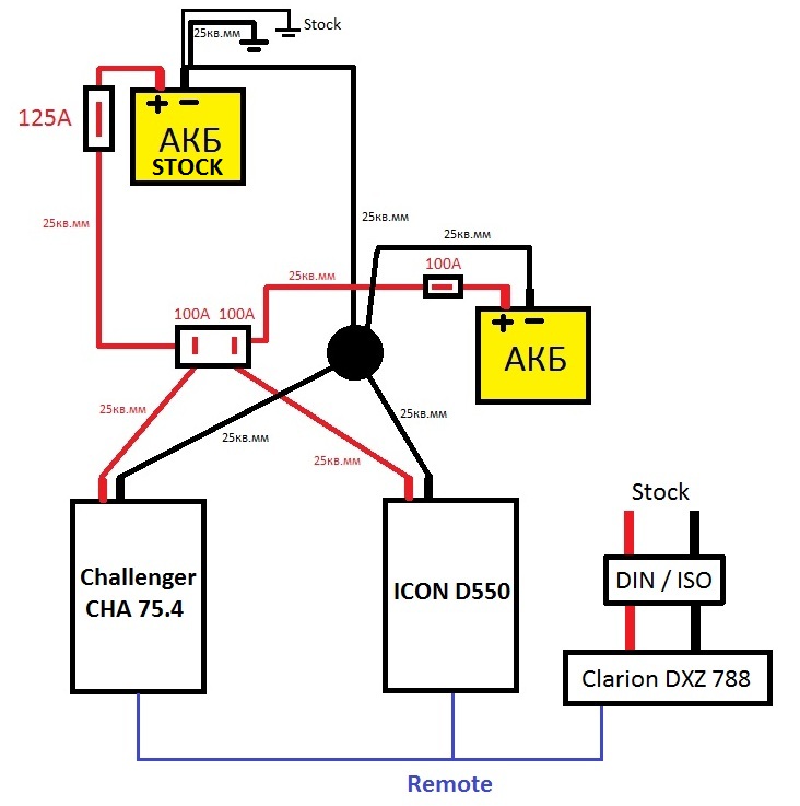 Можно и тянуть (25 квадратов). А можно и не тянуть - на стоковом АКБ на кузов кинуть ещё одну массу (25 квадратов). Либо заменить на стоковом нынешнюю дублирующую массу (25-ку) на 70 квадратов. Как тебе проще и удобнее - так и делай. |
