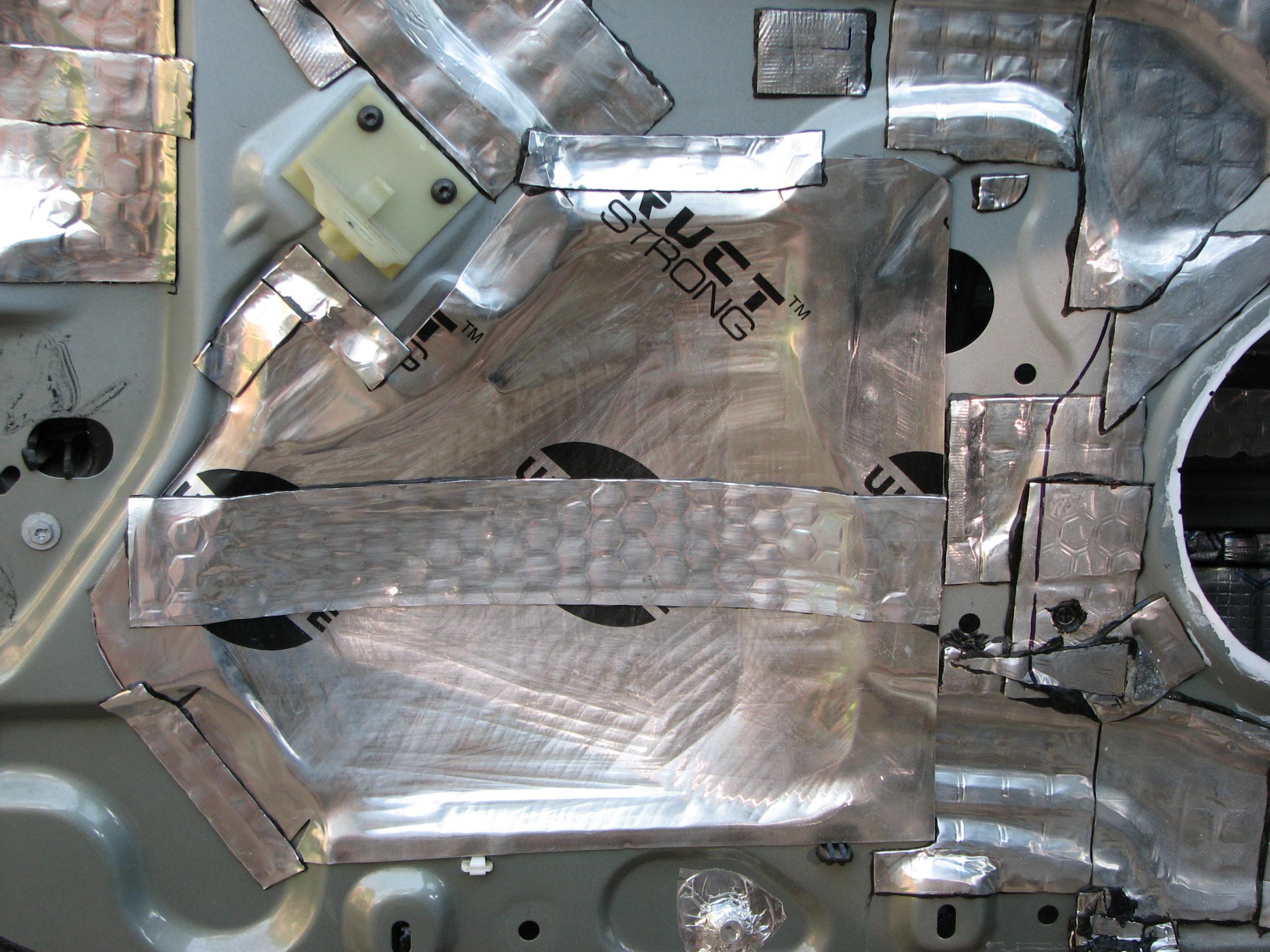 Под обшивкой места достаточно. У меня вот такая получилась акустическая подготовка двери.