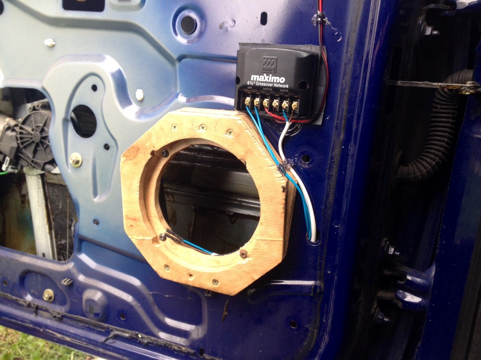 Вобщем немного решил поэксперименторовать... Убрал подиумы. В дверях динамик прикручен через фанерный подиум(сделаный еще год назад) с доворотом вниз! По другому карта не станет(( Фото подиума еще с неподготовлеными дверями, не обращайте внимания, сейчас все по-другому.