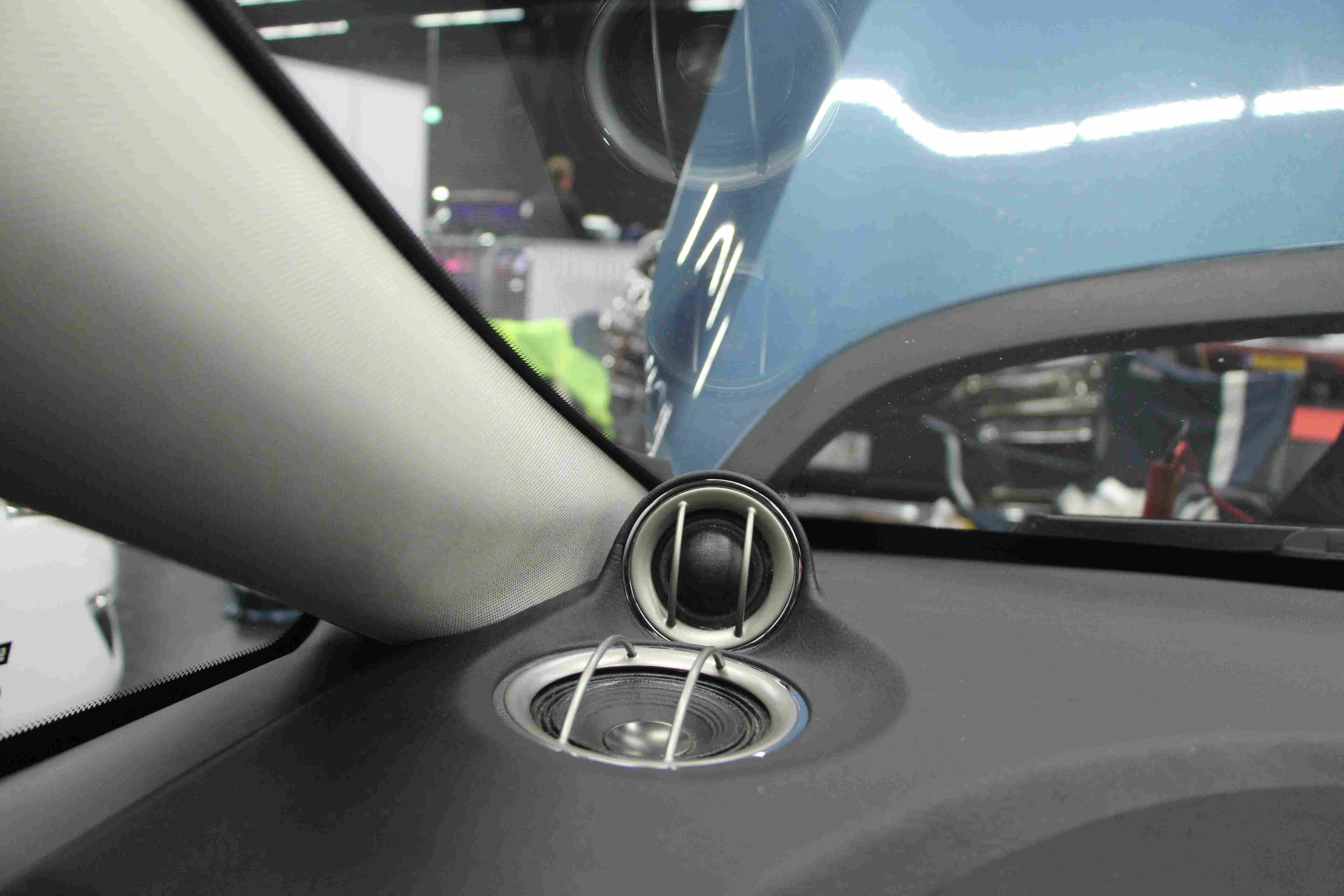 Нереальный инсталл, очень оригинальное решение по стойкам - ВЧ утоплены заподлицо, вся стойка обтянута акустически прозрачной тканью. Выглядит как полный СТОК с завода ![]()