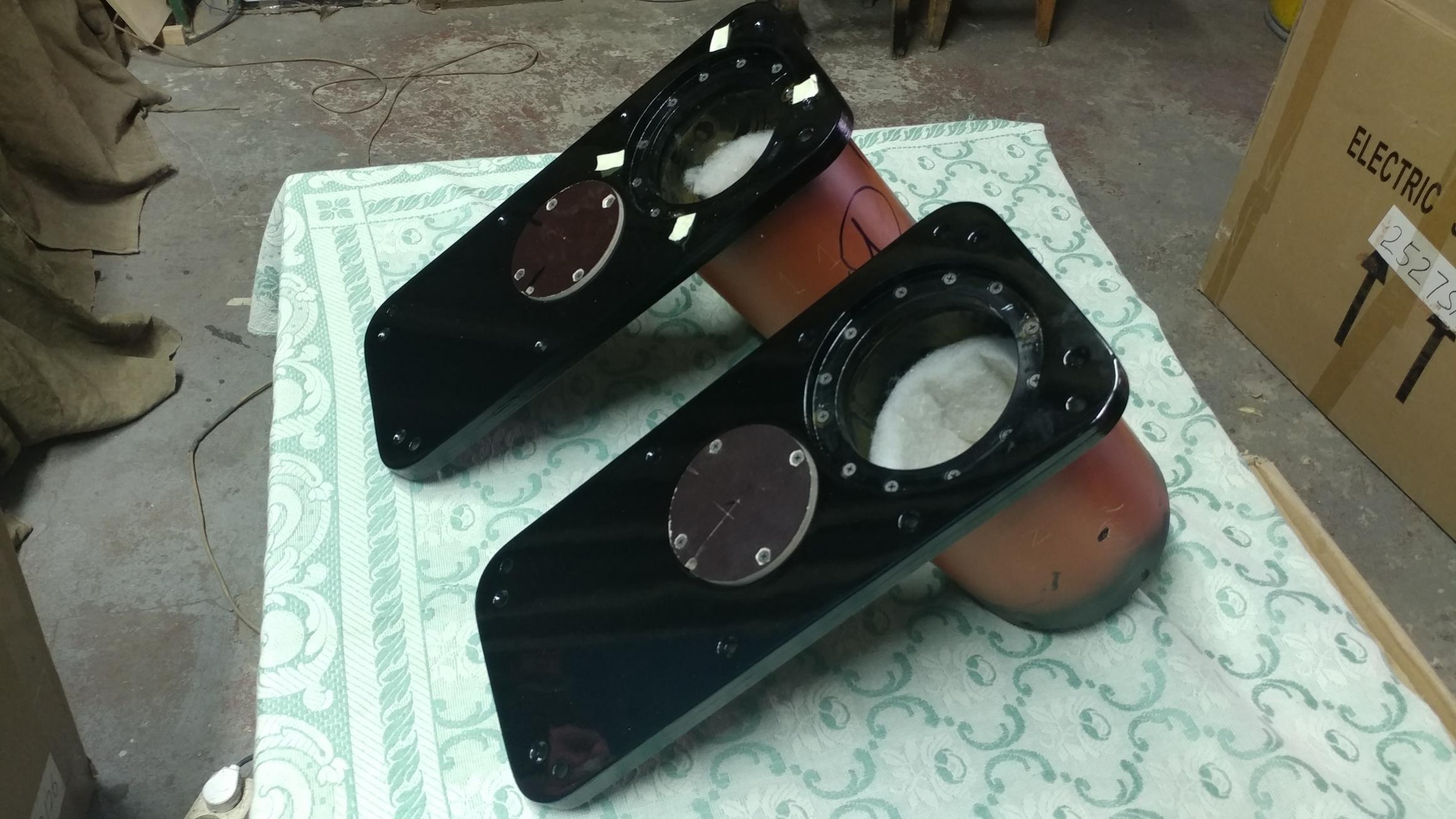панелей для установки ВЧ и СЧ динамиков, расширили посадочные отверстия для НЧ.... Завершили укрепление и герметизацию обьемов , крепление цилиндрических обьемов для СЧ динамиков...Фактически все грязные, пыльные работы выполнены,внутренности АС продуты сжатым воздухом, обработаны пылесосом.... Панели для СЧ и ВЧ в покраске.... Ждем их и динамики....а также изготовим проставочные кольа Т=4мм для ВЧ и СЧ головок P.S. Все посадочные места под динамики выполнены фактически.....под НАИБОЛЕЕ распространенные типы головок, а именно под диаметры 272мм ( НЧ ) , 150мм ( СЧ ) и 104 мм ( ВЧ ). Т.е. возможному покупателю не придется ничего переделывать или утруждать себя выпиливанием отверстий!! Обьемы под головки тоже из расчета для широкораспространенных....( для НЧ - 56л + 10-15% за счет демпфера и для СЧ - 3,5 л + 10-15% за счет демпфера ) . |