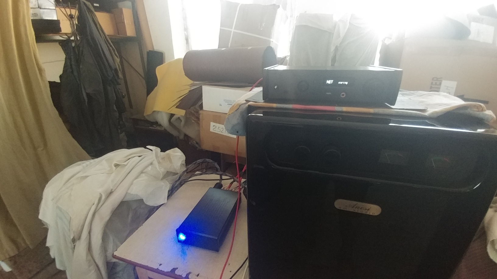 Наконец то получили высококлассный активный кроссовер для опробования в проекте ПИРАМИДА... Ну а потренироваться и проверить его возможности для начала решили в проекте АС Satory ( 3-х полосный активный кросс, поканальное усиление, источник сигнала сетевой плейер Teac NT-505 ), Сразу потребовалась куча качественных аналоговых кабелей, собрали все лучшее,что было под рукой ( DLS , VDH, Dietz ). С плейером вроде уже разобрался самостоятельно, поэтому прослушивал и по USB и по сети....