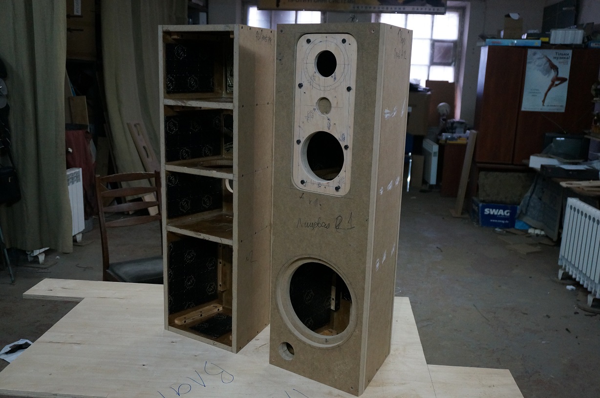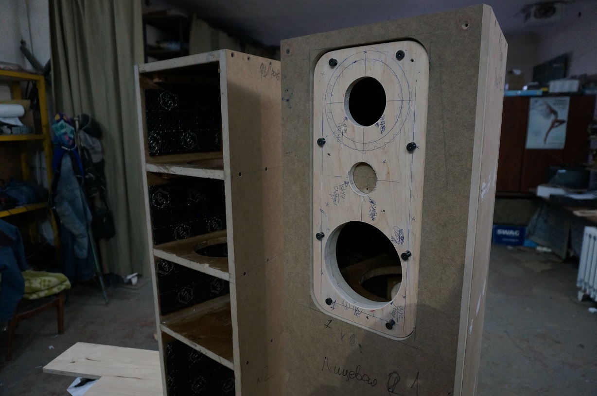 размер мы отслушали.....впечатление, что сцена по уровню располагается хорошо, на уровне ушей, глаз, головы, достаточно комфортно..Фокусировка тоже вроде хорошая, правда не все предполагаемые головки были смонтированы. Вот когда все динамики соберем, то вчерне, перед отделкой будем все прослушивать...